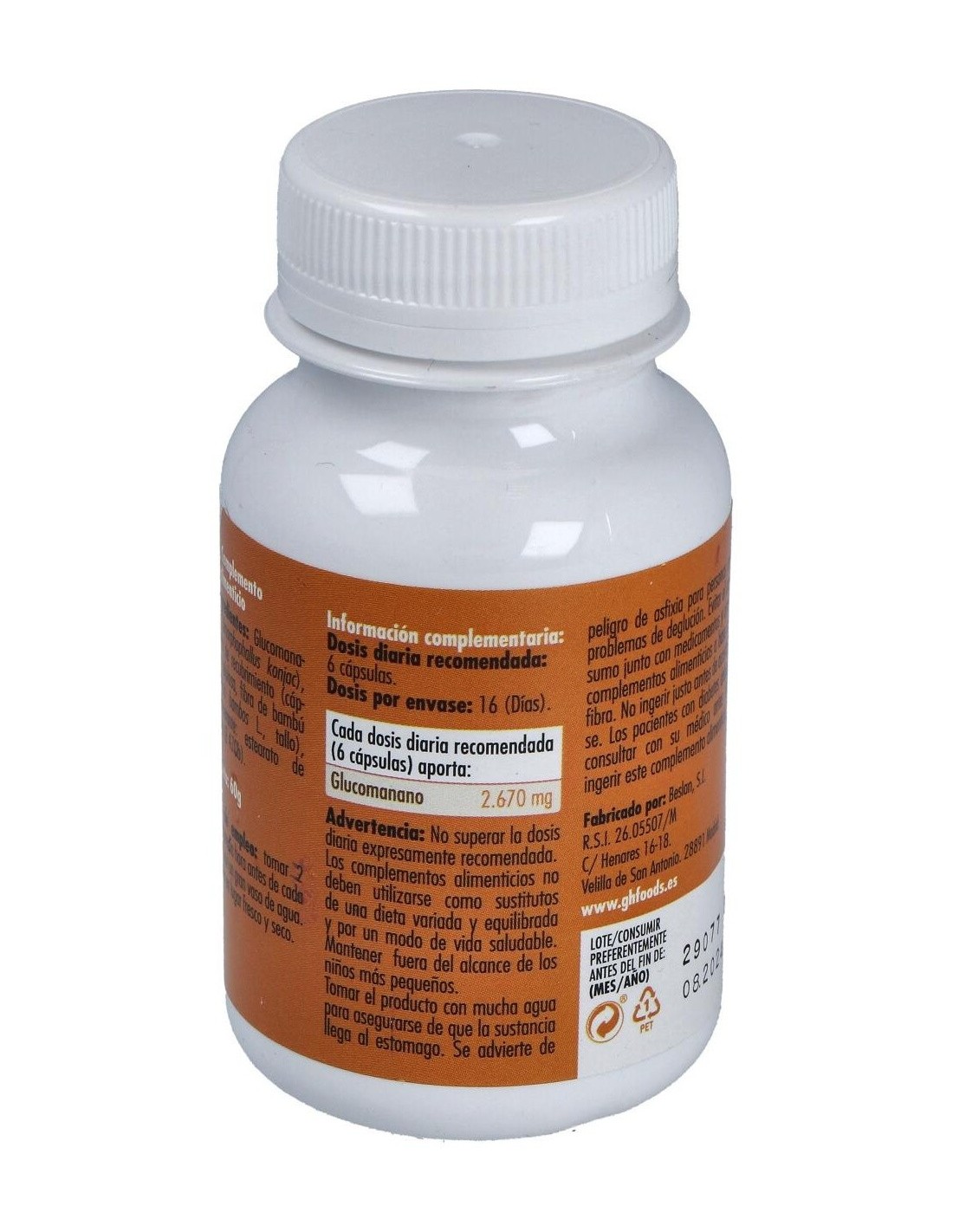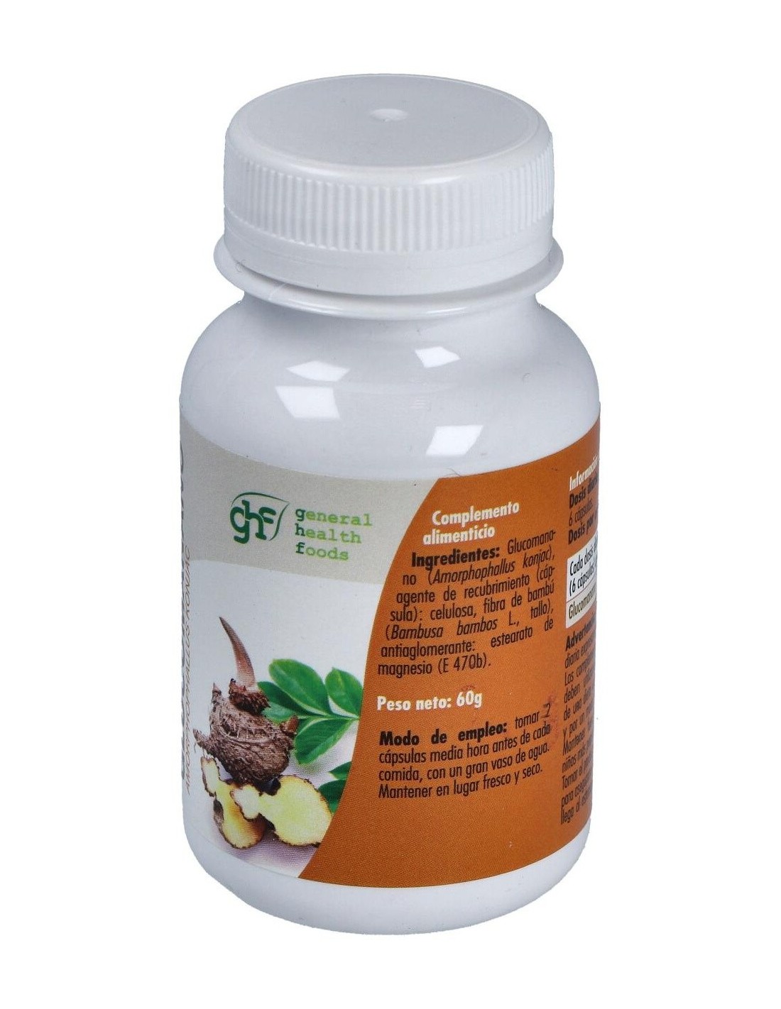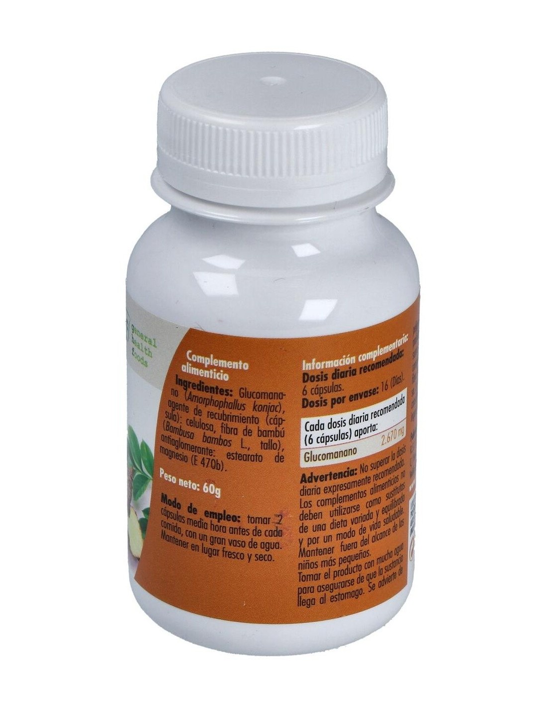 - Cada cápsula contiene 600 mg de glucomanano, una fibra soluble que contribuye a la sensación de saciedad.