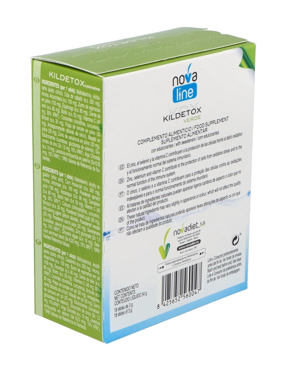 Kildetox Envase de 18 sticks de 3 g. de Novadiet ofrece una solución práctica para quienes buscan complementar su rutina diaria con un producto pensado para facilitar su consumo y manejo.