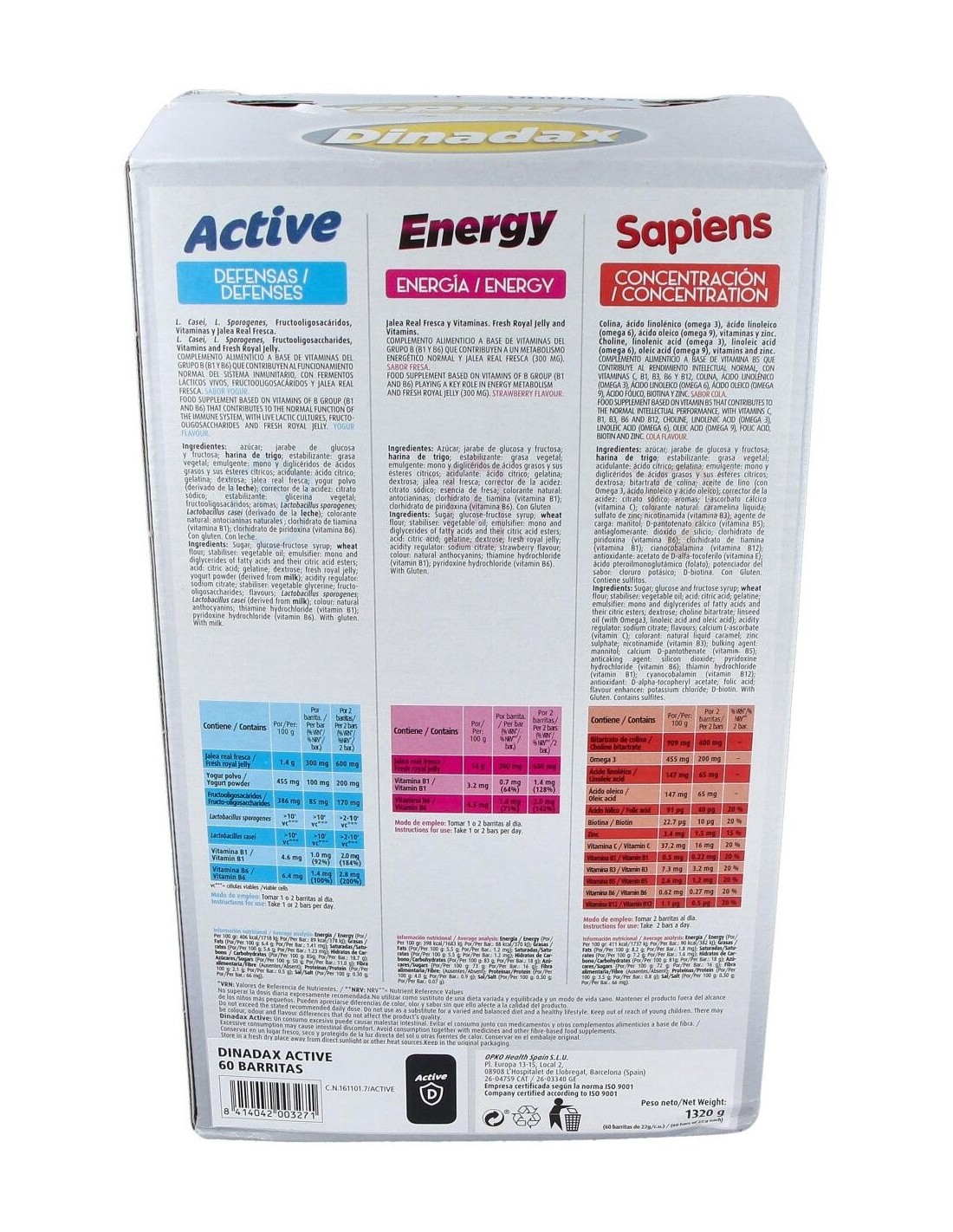 Dinadax Active (Yogur) Expositor 60Barritas de Pharmadiet