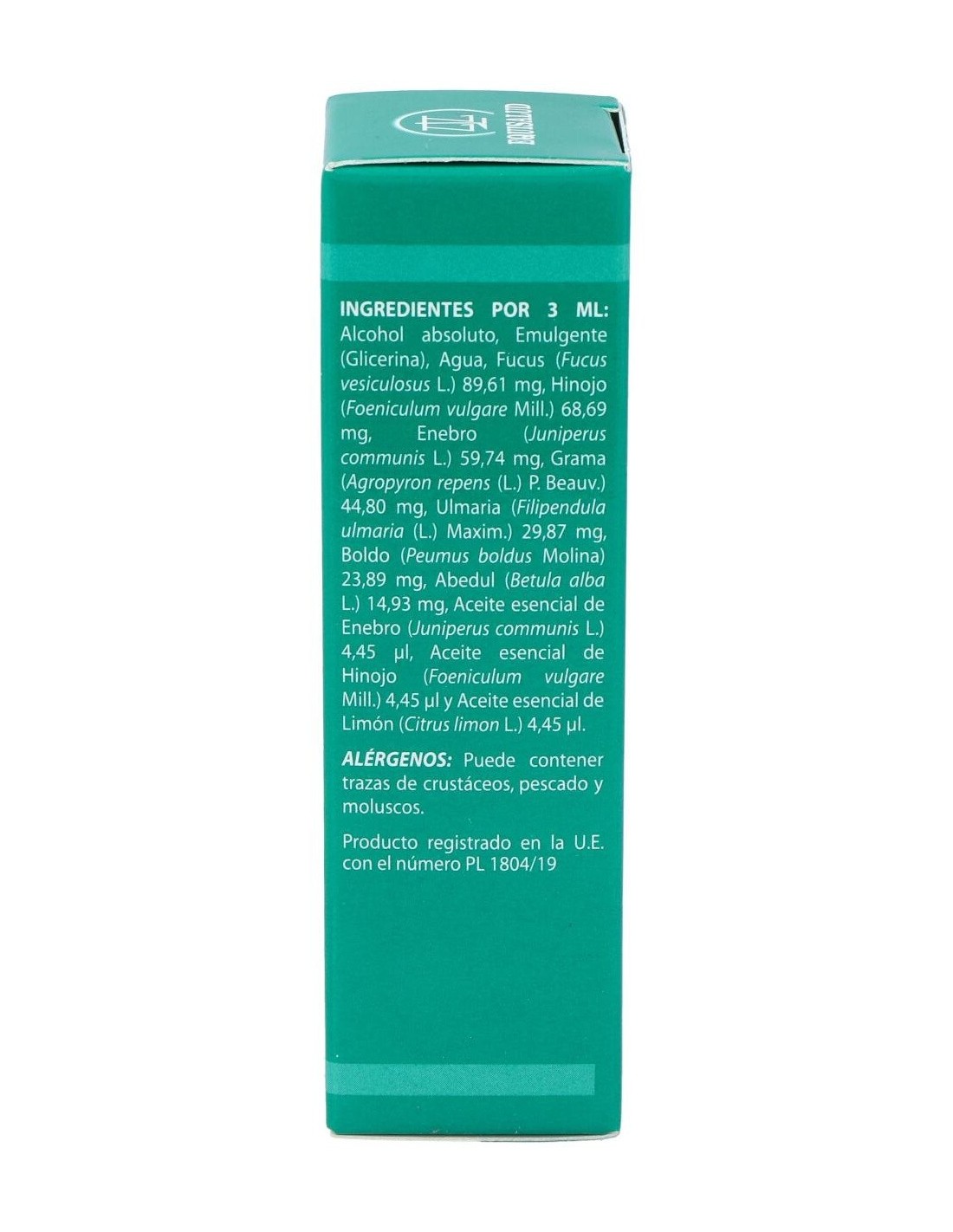 Esta mezcla de plantas tiene una cuádruple finalidad: actuar sobre el metabolismo lipídico y la glándula tiroides, sobre la digestión y la asimilación de grasas, sobre el apetito y actuar con eficacia sobre el drenaje. Composición: