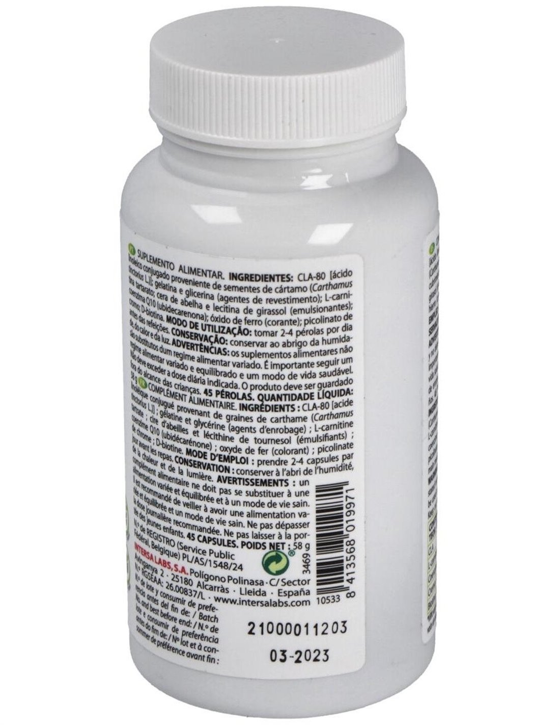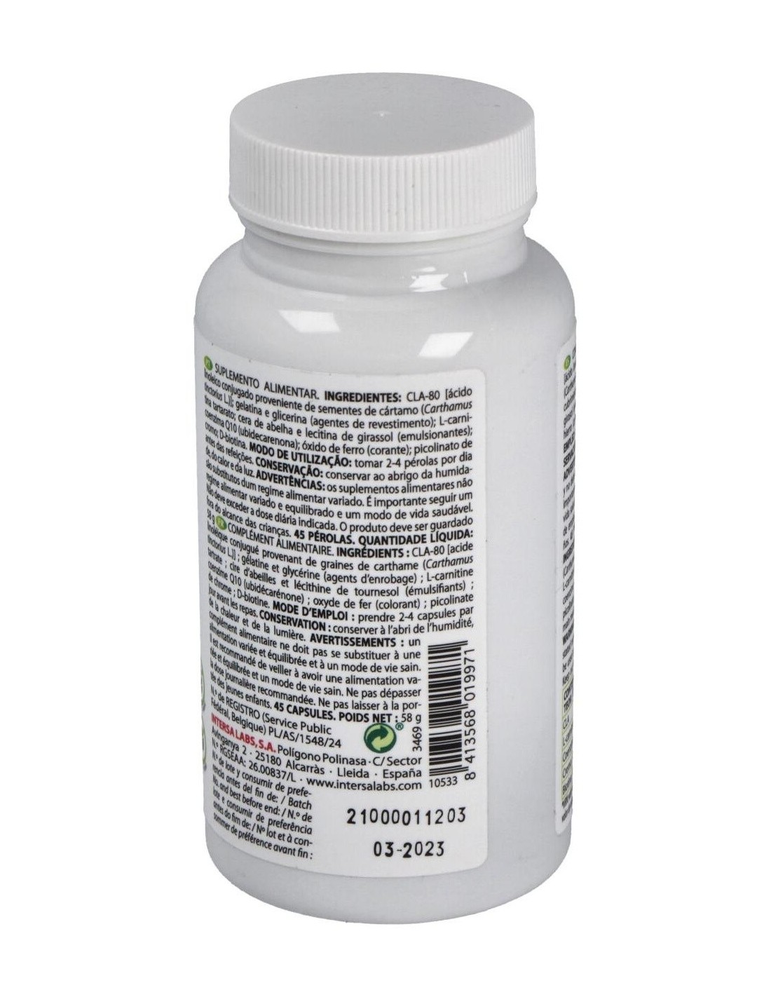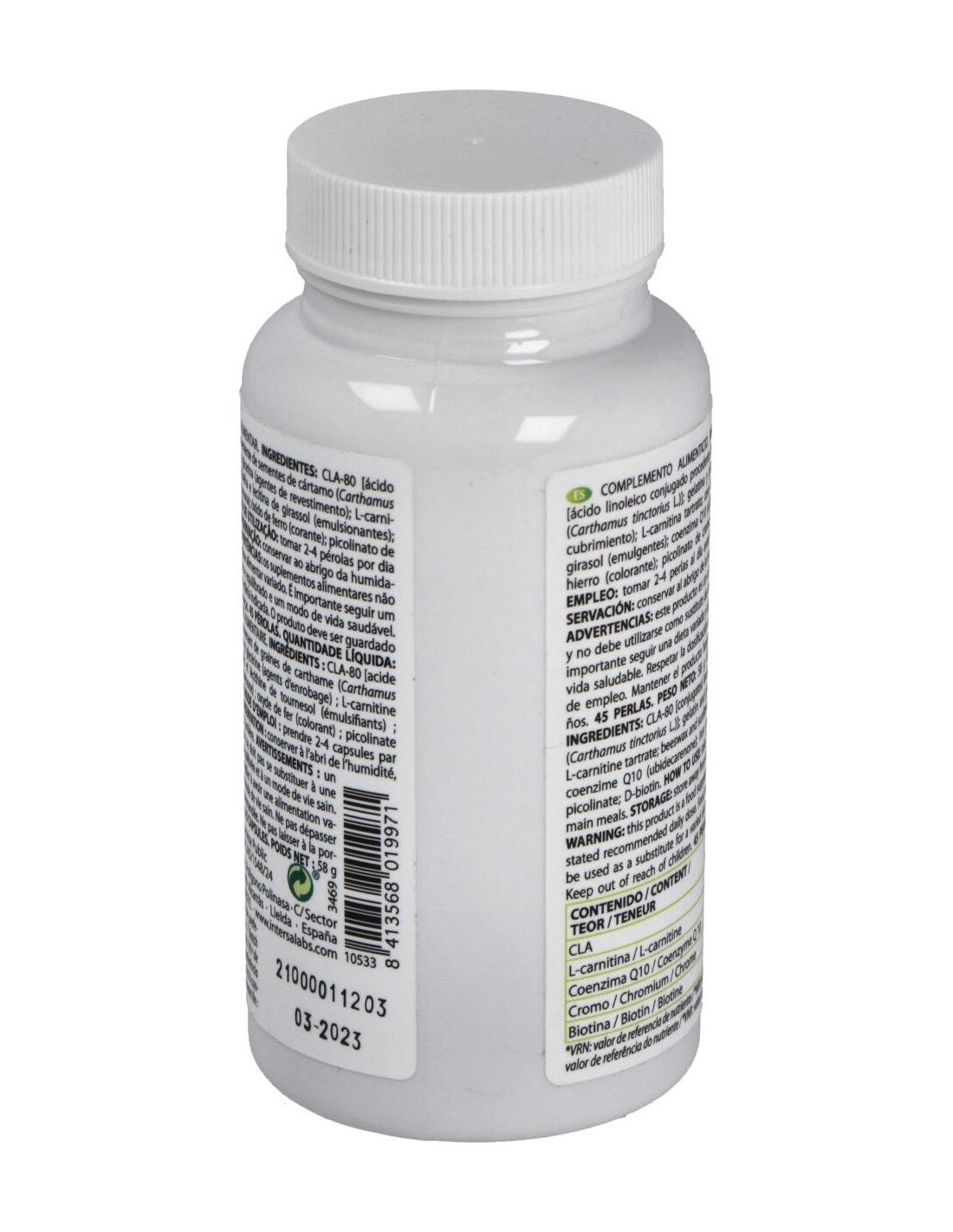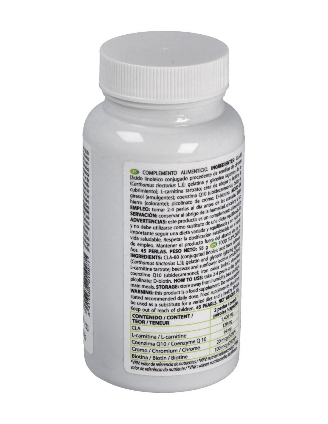 1.400 mg de CLA (ácido linoleico conjugado - aceite de cártamo).