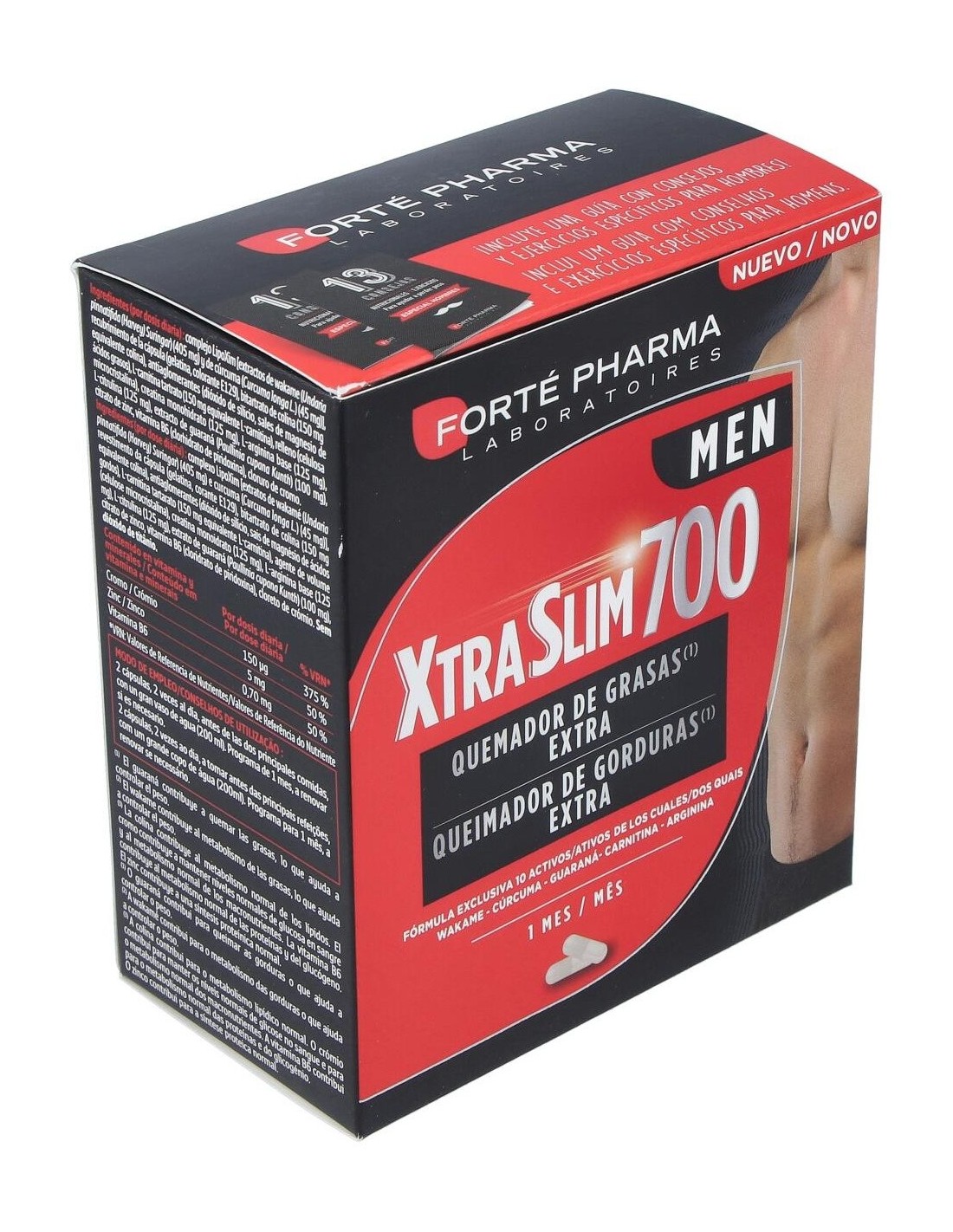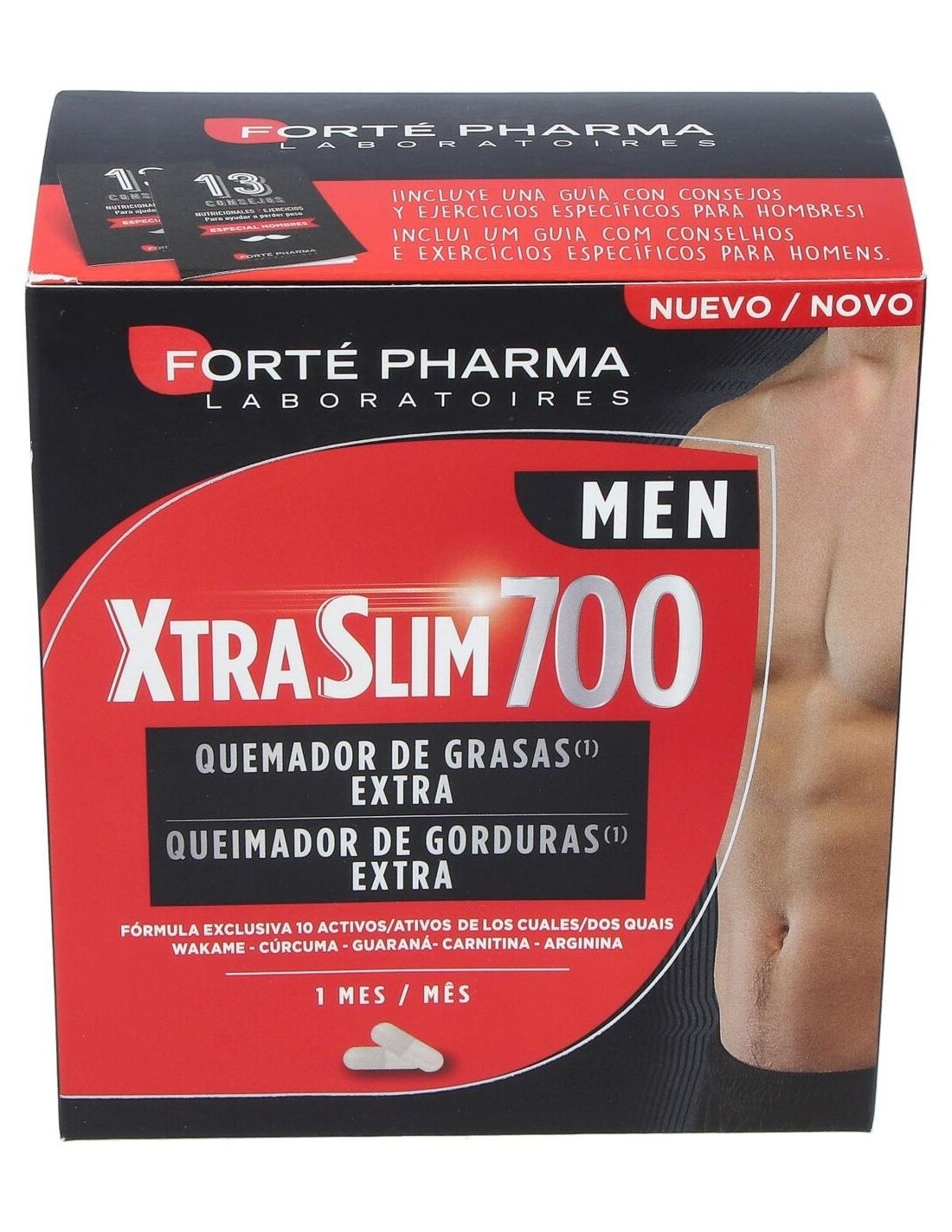 Forte Pharma Xtraslim 700 Men 120 Cap suplemento alimenticio en cápsulas que promueve la pérdida de peso de los hombres. Colabora a controlar nuestro peso manteniendo la masa muscular. Ideal para personas deportistas. Contiene 10 principios activos que tienen múltiples beneficios en la eficacia de perder peso.