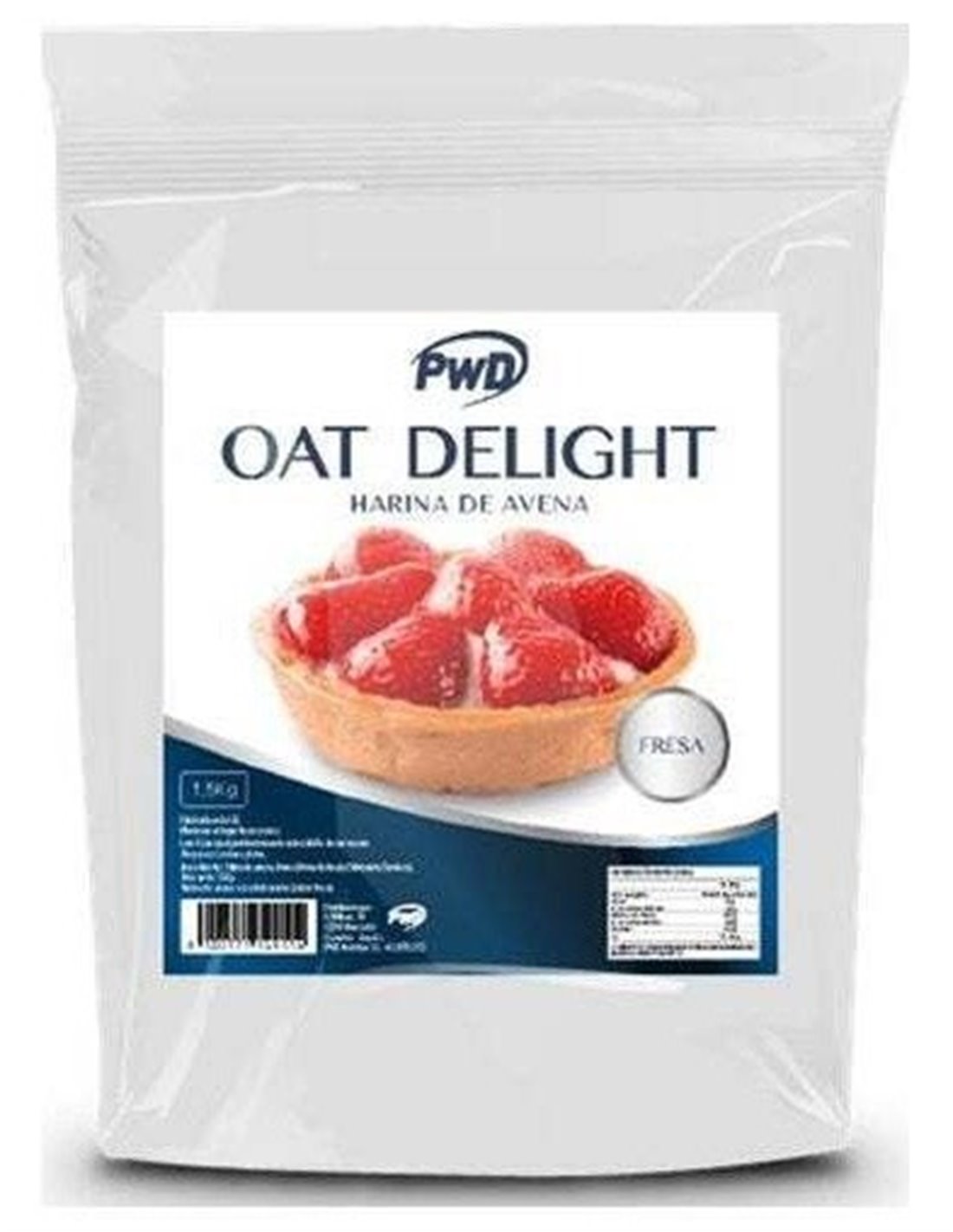 Harina de avena, Aroma (Aroma de fresa) y Edulcorante (Sucralosa).
