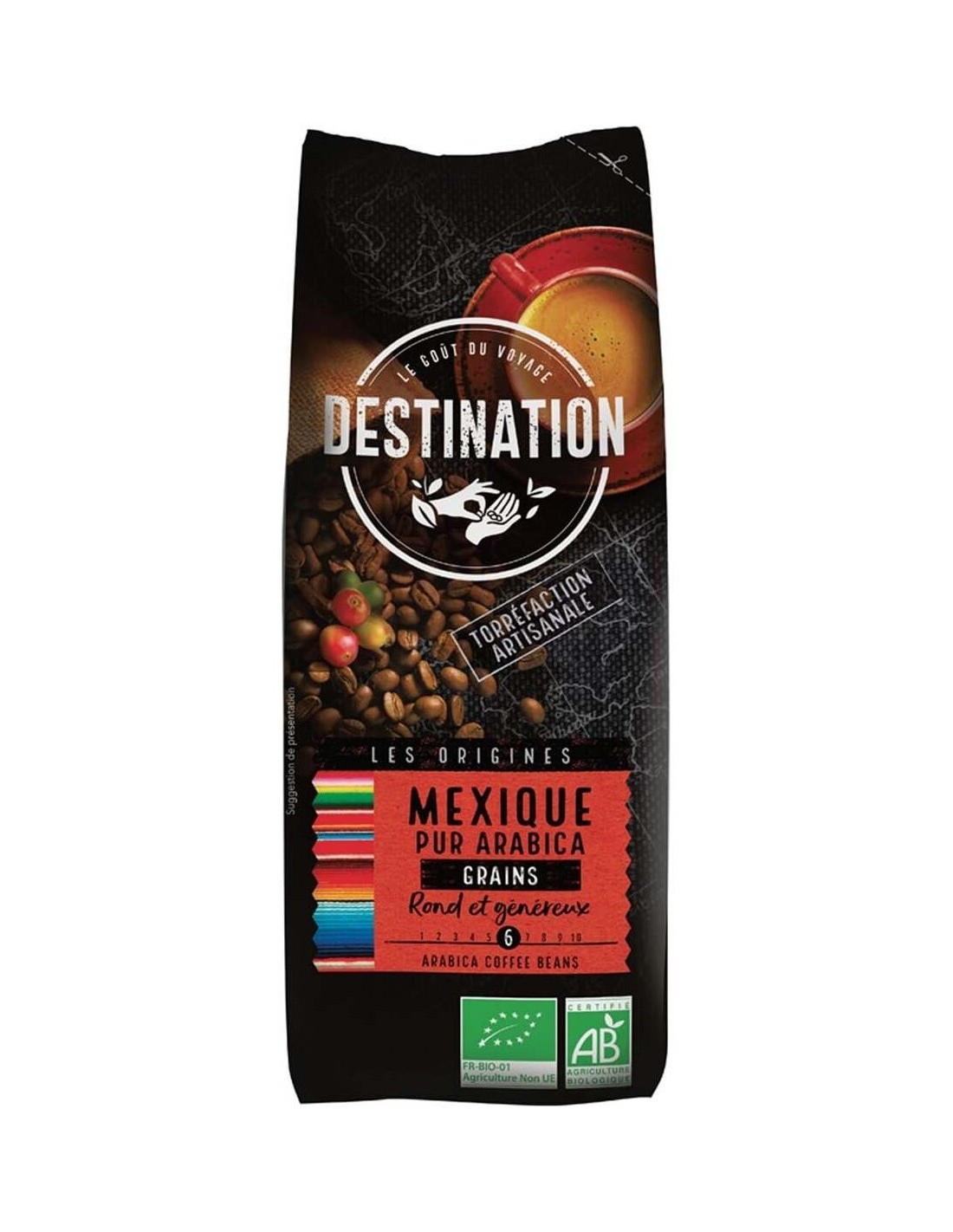 El Cafe Mexico 100% Arabica Grano 250Gr. Bio de Destination es un café en grano para consumidores que buscan un sabor natural y equilibrado, obtenido de cultivos orgánicos certificados que respetan el medio ambiente.