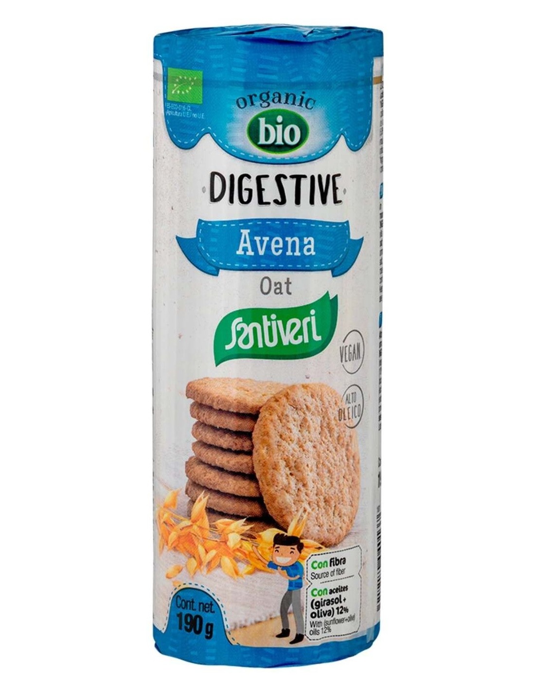 Galletas Digestive Avena Bio elaboradas con harinas 100% naturales, que aportan todos los nutrientes y un alto contenido en fibra. Indicado para una alimentación saludable. Son unas sabrosas galletas sin azúcares añadidos, pero sí con edulcorante con maltitol, por lo que se pueden incluir todas aquellas personas que deseen restringir el consumo de azúcar en su alimentación.