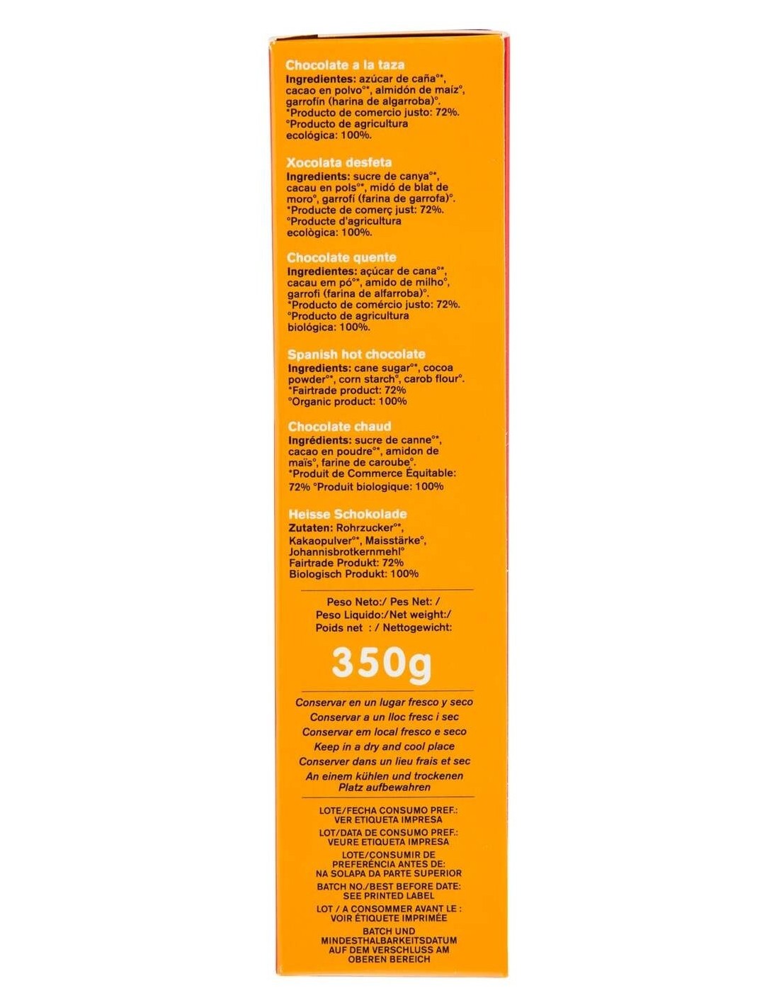 Chocolate a la taza en polvo en paquete de 350gr de peso. Incluye azúcar de caña natural de Paraguay y cacao desgrasado de República Dominicana.