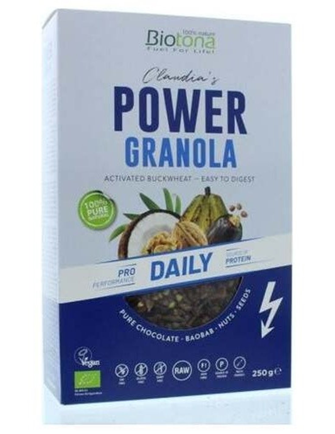 Power Granola Boost de Biotona es una granola pre-esfuerzo elaborada exclusivamente con ingredientes puros, sin procesar y cuidadosamente seleccionado