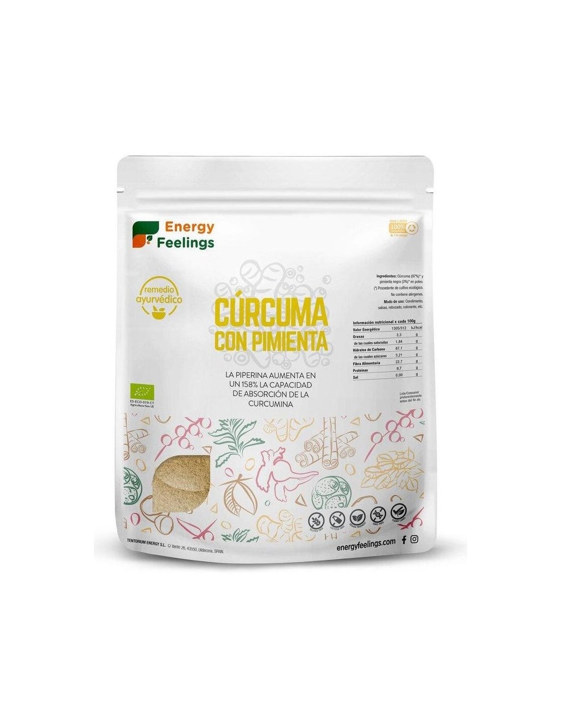 Curcuma Con Pimienta Polvo 1Kg. Eco Vegan Sg de Energy Feelings