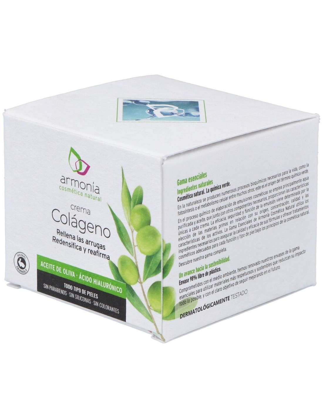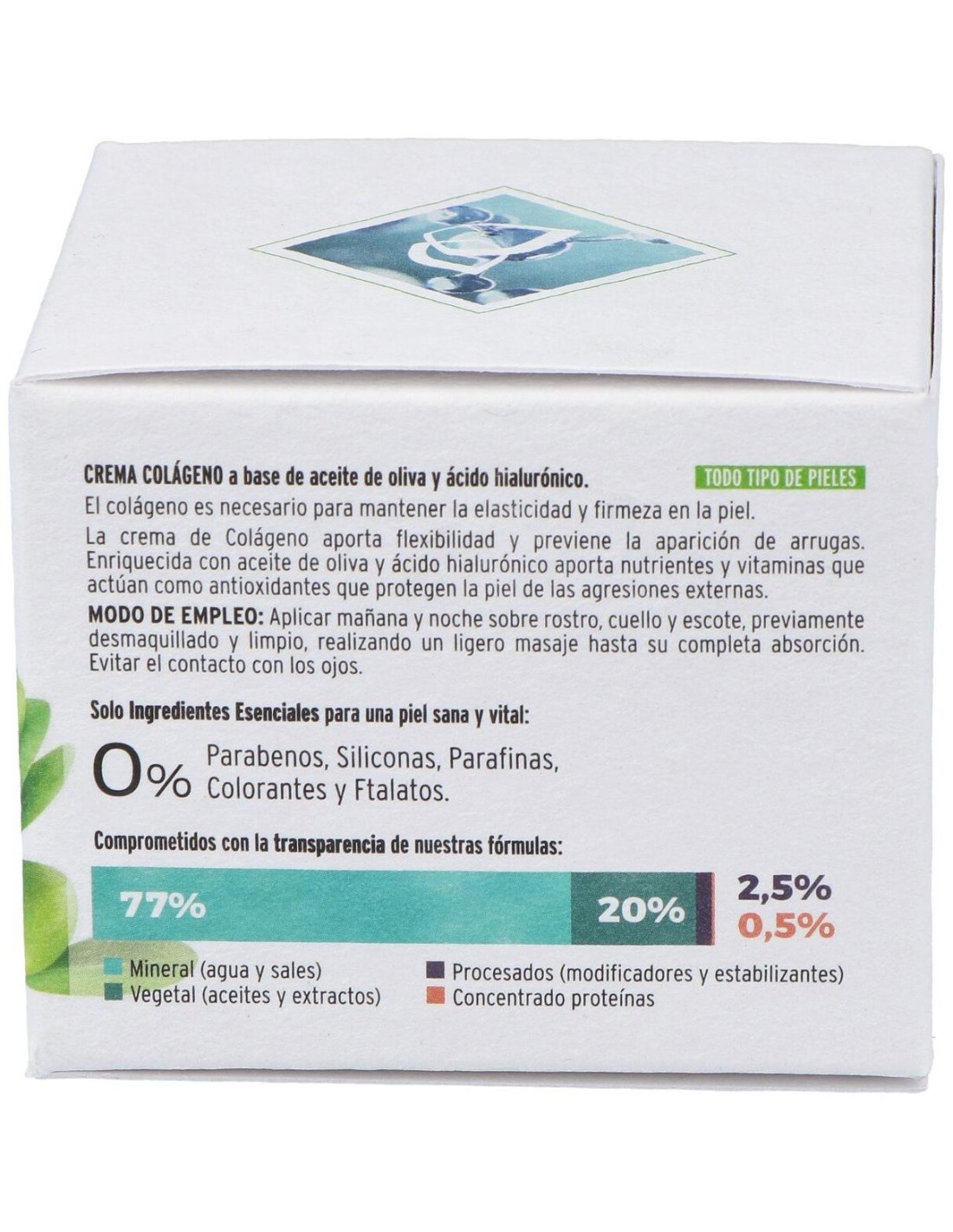 Crema Colágeno a base de aceite de oliva y ácido hialurónico. La crema de Colágeno aporta flexibilidad y previene la aparición de arrugas. Enriquecida