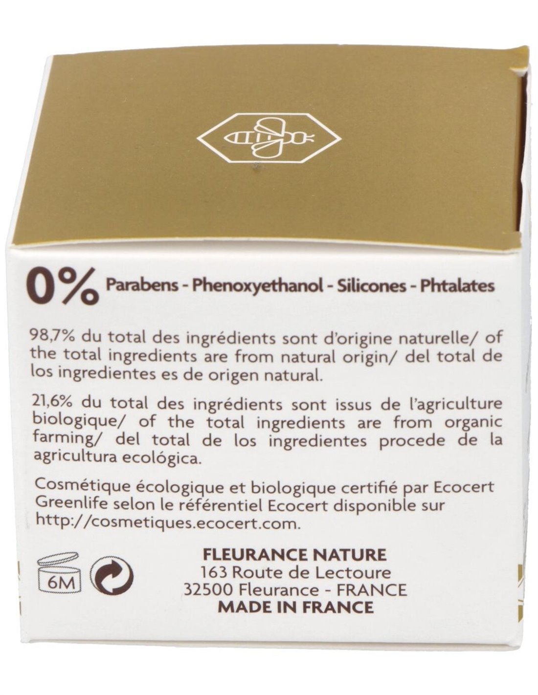 Crema Antiarrugas Regenerante con Jalea Real de Fleurance Nature es recomendada para retrasar la aparición de los signos de la edad y estimular la regeneración de su piel, este tratamiento hidratante, antiarrugas* y regenerador, asocia a la jalea real activos con propiedades antioxidantes, redensificantes y nutritivas con las virtudes revitalizantes de la jalea real.¡Las arrugas y las líneas finas se desvanecen, la tez se unifica, y la piel recupera brillo y elasticidad!Principios activos: