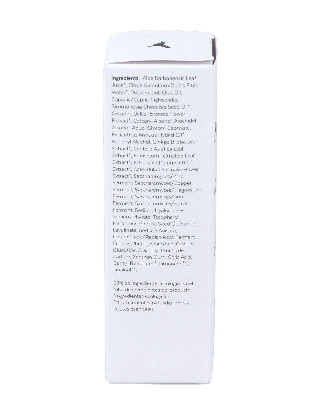 Aloe Barbadensis Leaf Juice*, Citrus Aurantium Dulcis Fruit Extract*, Propanediol, Olus Oil*, Caprylic/Capric Triglyceride, Simmondsia Chinensis Seed Oil*, Bellis Perennis Flower Extract*, Glycerin, Cetearyl Alcohol, Arachidyl Alcohol, Aqua, Behenyl Alcohol, Glyceryl Caprylate, Ginkgo Biloba Leaf Extract*, Centella Asiatica Leaf Extract, Equisetum Arvensis Leaf Extract*, Calendula Officinalis Flower Extract*, Equinacea Purpurea Root Extract*, Saccharomyces/ Zinc Ferment, Saccharomyces/ Copper Ferment,Saccharomyces/ Magnesium Ferment, Saccharomyces/Iron Ferment, Saccharomyces/Silicon Ferment, Sodium Hyaluronate, Sodium Phytate, Tocopherol, Arachidyl Glucoside, Sodium Levulinate, Cetearyl Glucoside, Parfum, Xanthan Gum, Citric Acid.