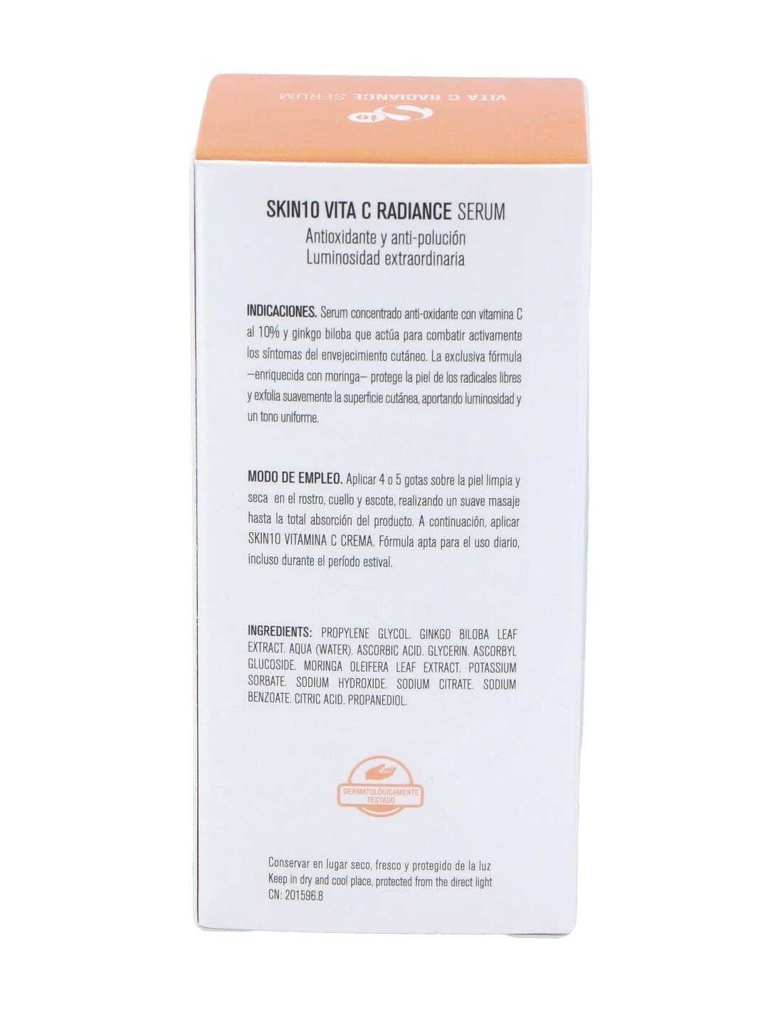 Principales ingredientes: Vitamina C 10%, ginkgo biloba, extracto de moringa.