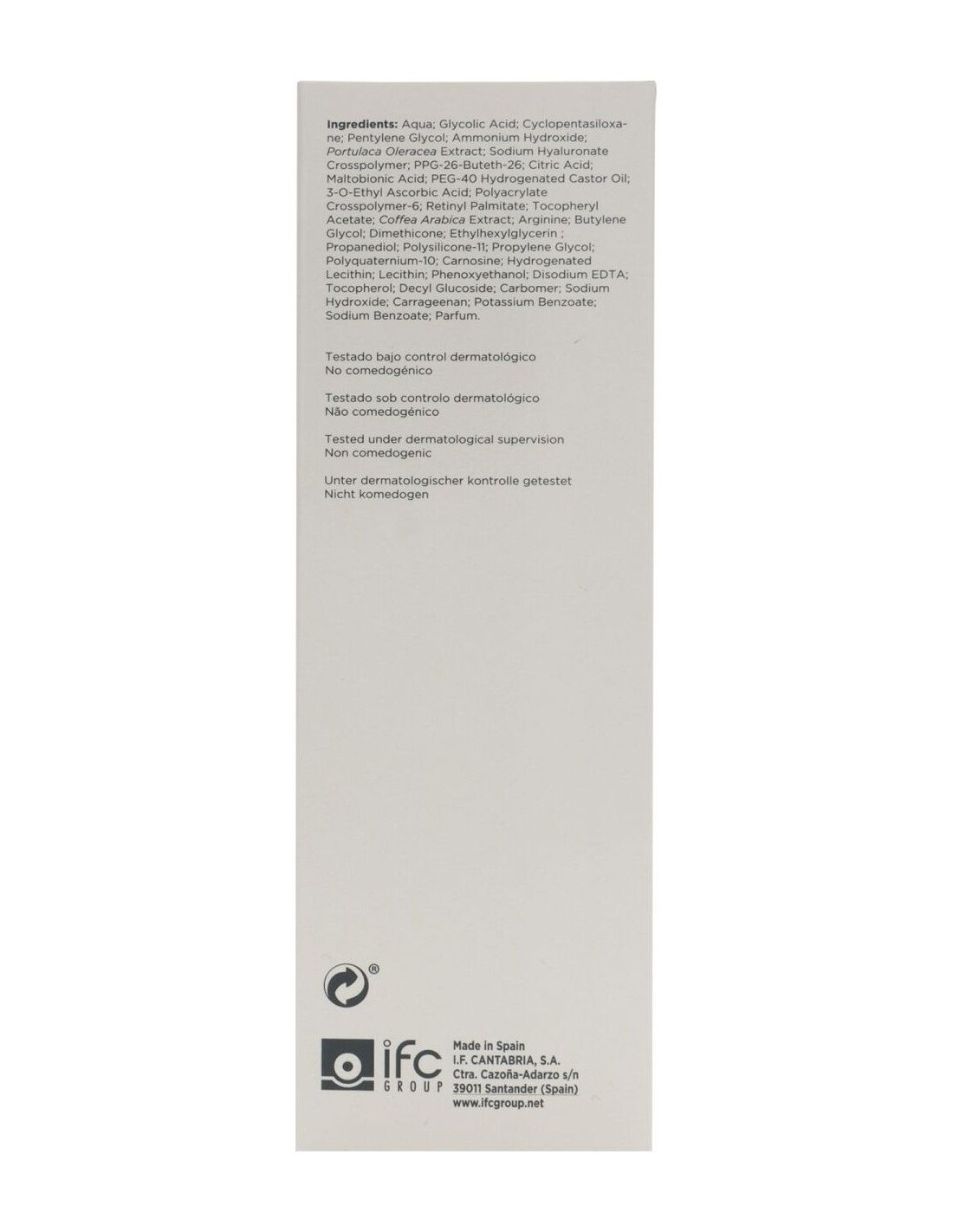 AQUA. GLYCOLIC ACID. CYCLOPENTASILOXANE. PENTYLENE GLYCOL. AMMONIUM HYDROXIDE. PORTULACA OLERACEA EXTRACT. SODIUM HYALURONATE CROSSPOLYMER. PPG-26-BUTETH-26. CITRIC ACID. GLUCONIC ACID. PEG40 HYDROGENATED CASTOR OIL. 3OETHYL ASCORBIC ACID. POLYACRYLATE CROSSPOLYMER-6. RETINYL PALMITATE. TOCOPHERYL ACETATE. COFFEA ARABICA EXTRACT. ARGININE. BUTYLENE GLYCOL. DIMETHICONE. ETHYLHEXYLGLYCERIN. 13 PROPANEDIOL (1,3DIHYDROXYPROPANE). POLYSILICONE-11. PROPYLENE GLYCOL. POLYQUATERNIUM10. CARNOSINE. HYDROGENATED LECITHIN. LECITHIN. PHENOXYETHANOL. EDTA DISODIUM. TOCOPHEROL. DECYL GLUCOSIDE. CARBOMER (CARBOXYPOLIMETILEN). SODIUM HYDROXIDE. CARRAGEENAN. POTASSIUM BENZOATE. SODIUM BENZOATE. PARFUM.