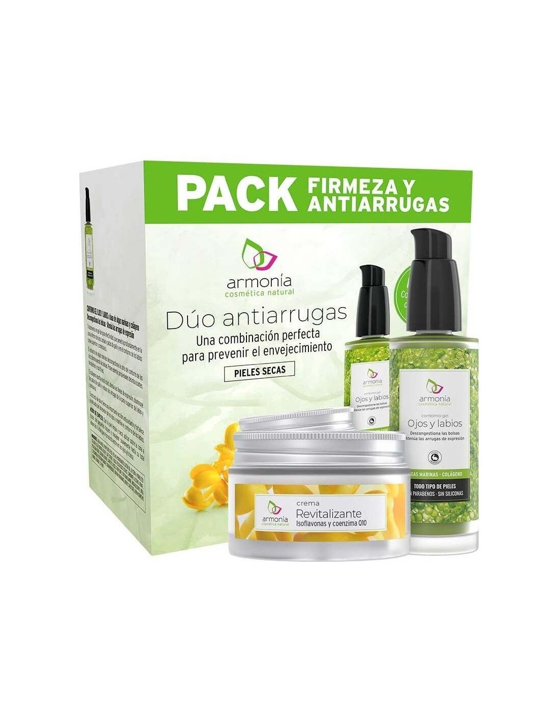 El Pack Antiarrugas Revitalizante 50Ml+Contorno 30Ml de Armonia es un set de cuidado facial para personas que buscan reducir signos de envejecimiento, combinando ingredientes activos que ayudan a revitalizar y mejorar la apariencia de la piel.
