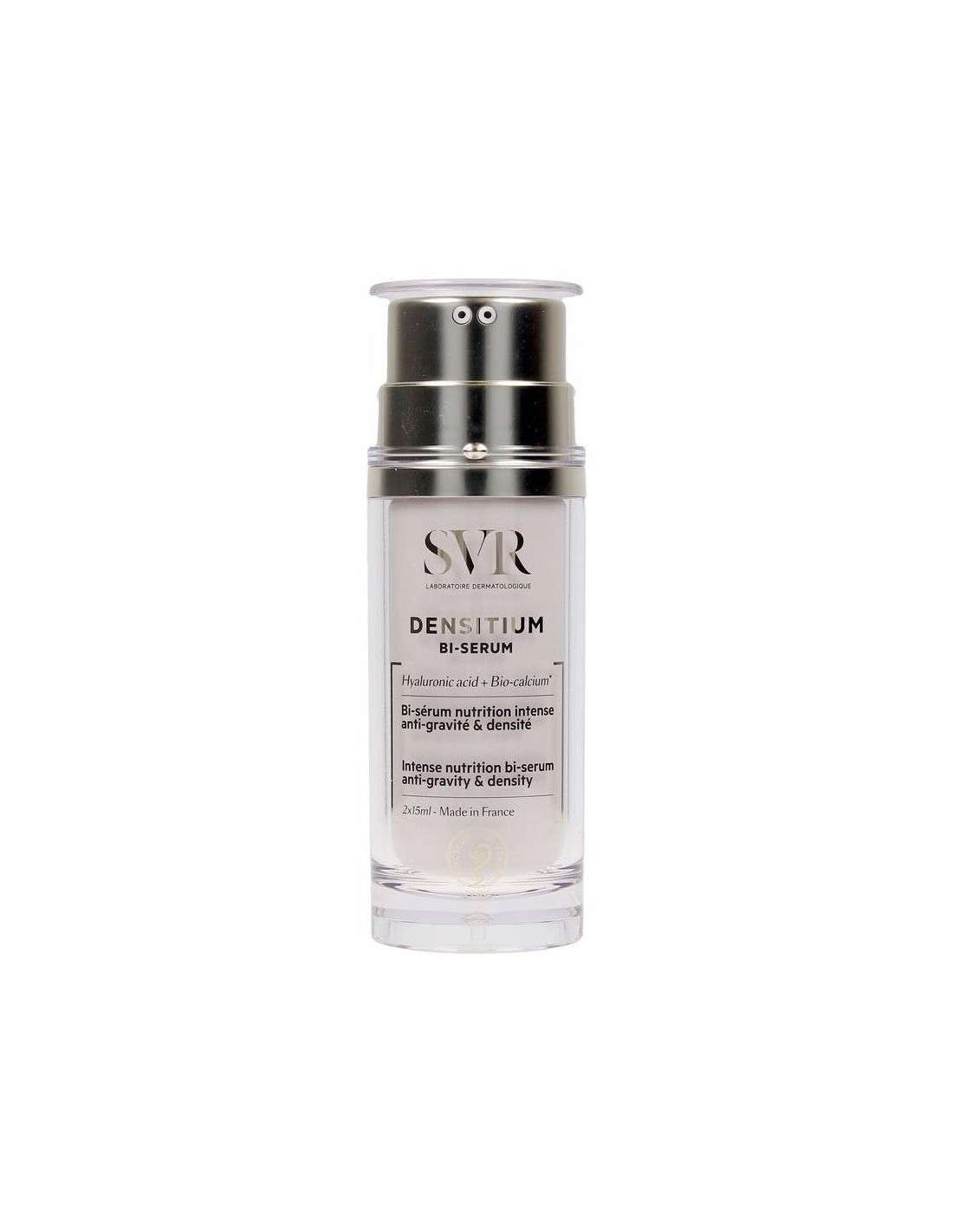 Sérum antiedad con 2 fórmulas para una nutrición intensa. \ SÉRUM ACUOSO:\ Bio-calcio. Reestructura y fortalece la epidermis.\ Ácido hialurónico ultra-fragmentado. Rellena la piel y restaura las reservas de agua\ Activo antigravedad. Estimula la síntesis de colágeno para un efecto antiflacidez.\ \ SÉRUM LIPÍDICO:\ Combinación de 4 aceites naturales (Roucou, Borraja, Onagra y Argán). Mejoran la nutrición y reducen la profundidad de las arrugas.\ Profundamente reestructurada, la piel se redensifica y nutre intensamente. Ya no se debilita, incluso bajo los efectos de la gravedad.