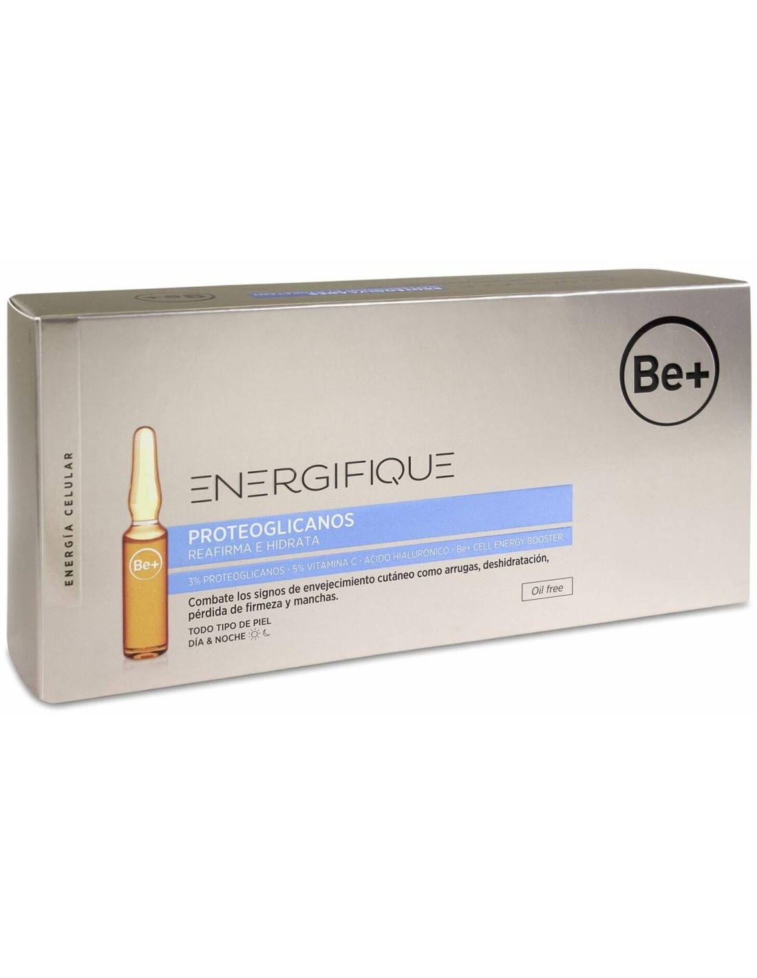 Ampollas con efecto tensor diseñadas para la piel del rostro, cuello y escote. Tienen una textura de fluida, que se absorbe rápidamente en la piel y no contiene aceites. Con una formulación a base de proteoglicanos, vitamina C, ácido hialurónico, que ayudan a nutrir la epidermis y a prevenir el envejecimiento prematuro. Aportan flexibilidad, elasticidad, resistencia y luminosidad al cutis. Contribuye a la protección antioxidante de las células y estimula la luminosidad natural. Testadas dermatológicamente. Adecuadas para todo tipo de piel.