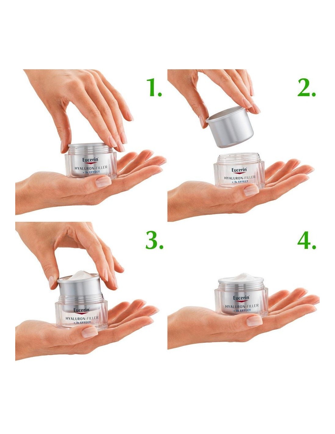 EUCERINEucerin Hyaluron-Filler Día FPS 15 para piel normal y mixta aborda los primeros signos de envejecimiento en la piel mixta. Rellena notablemente las líneas de expresión y las arrugas profundas para conseguir un aspecto rejuvenecido. Previene eficazmente el fotoenvejecimiento inducido por los rayos UV (envejecimiento prematuro de la piel causado por el sol), las arrugas profundas y protege la piel de los radicales libres.