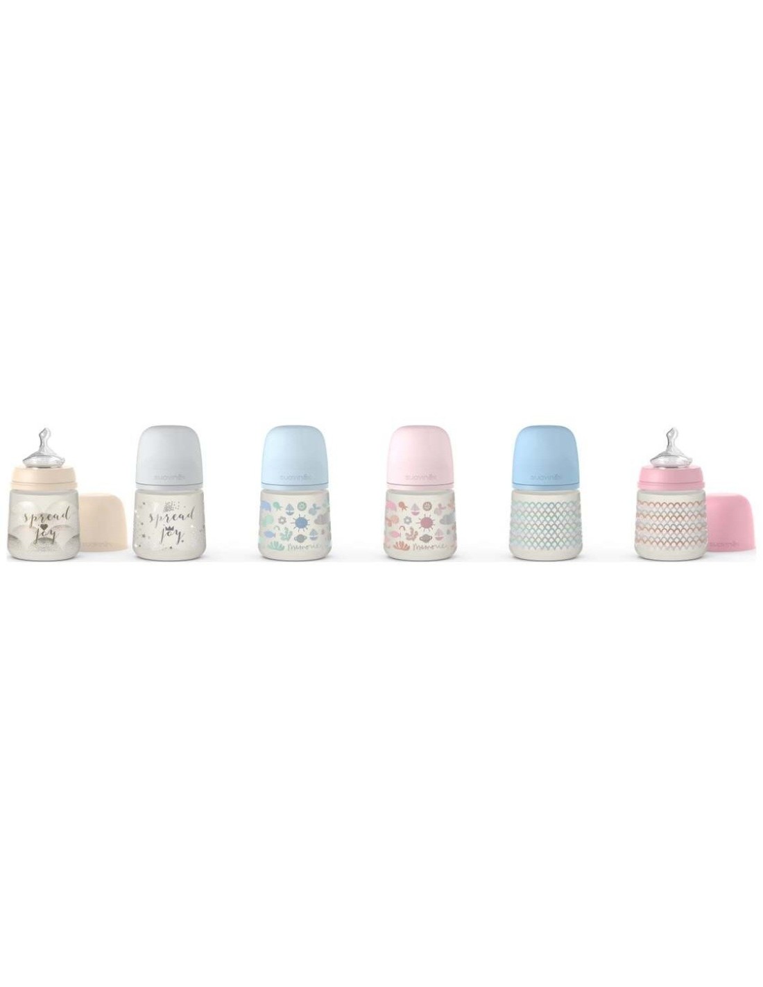 Este biberón tiene una capacidad de 150 ml, un tamaño ideal para los primeros meses de vida del bebé. La cantidad de leche o alimento que puede contener es perfecta para satisfacer las necesidades de alimentación de tu pequeño.