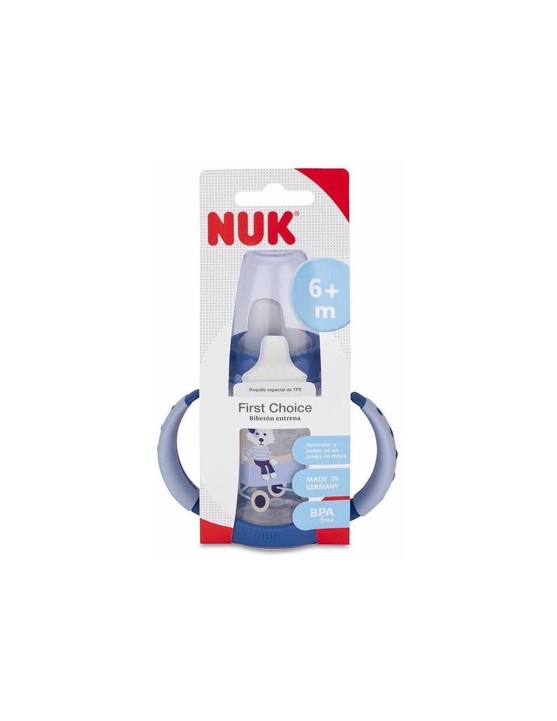 NUKCon indicador de Control de Temperatura en la escala de medición. El color cambia con la temperatura del contenido del biberón. Si el alimento está demasiado caliente, el indicador pasa de azul a blanco.\ No contiene sustancias nocivas; sin olor y sin BPA.\ Cuello ancho para facilitar el llenado y la limpieza.\ Con sistema de ventilación NUK ANTI-COLIC AIR SYSTEM mejorado que ayuda a prevenir los cólicos.\ Al ser antigoteo evita el derrame de agua si se cae al suelo o el bebé juega con el biberón.\ Incluye anillo de rosca, disco de cierre y tapa protectora.\ Con asas de diseño ergonómico para una sujeción segura.\ Los modelos y colores pueden variar con respecto a la imagen.