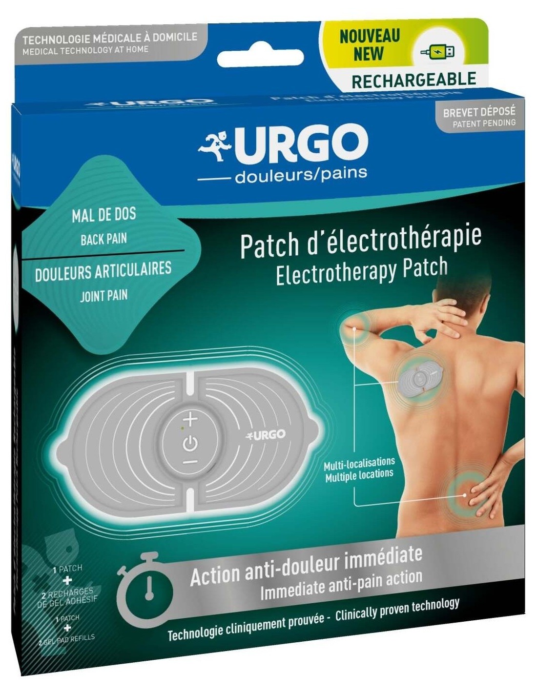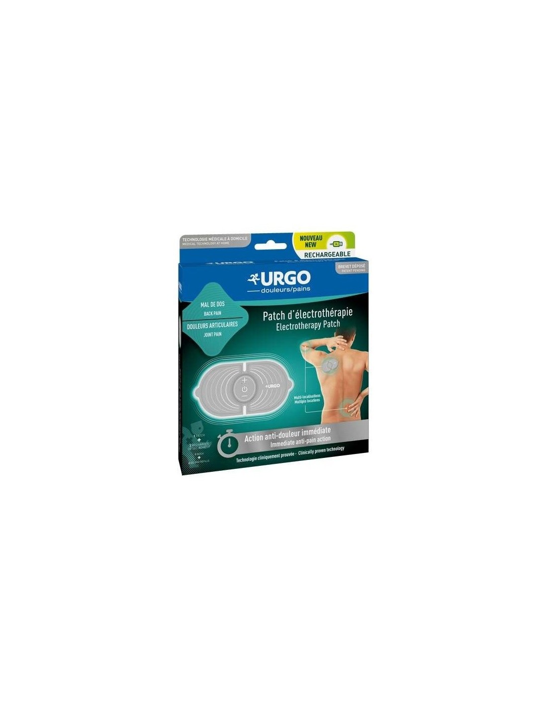 El Parche de Electroterapia Recargable Urgo tiene un soporte suave cuya flexibilidad facilita su aplicación en las zonas doloridas.