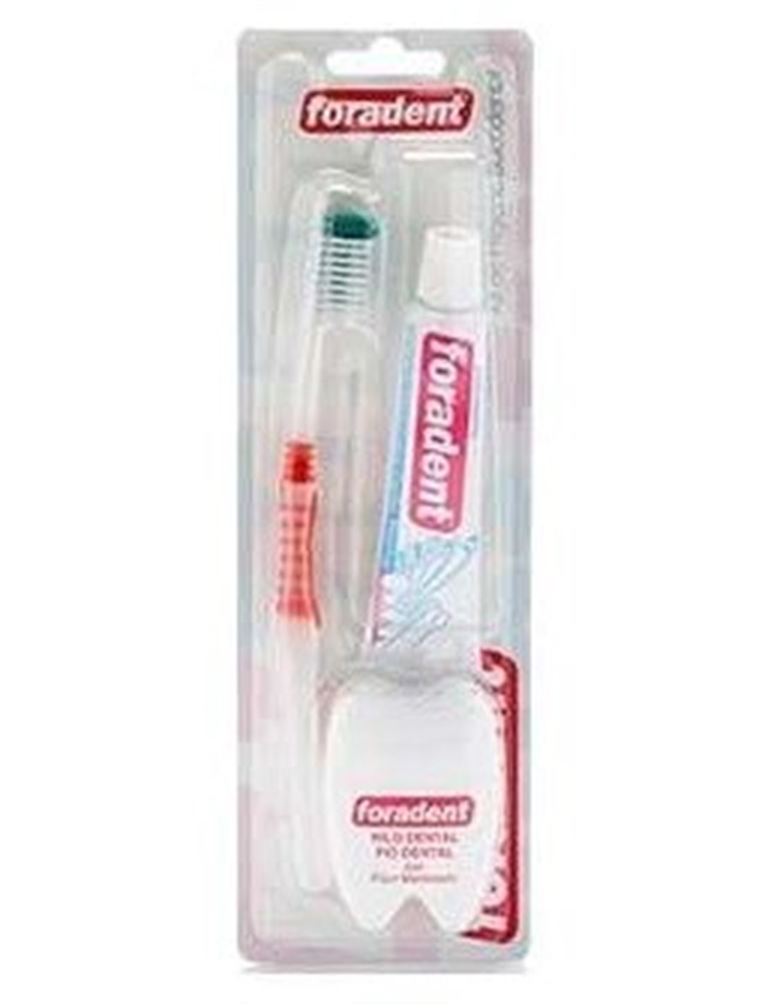 El set de viaje Foradent Travel Plus 3 en 1 contiene los siguientes productos: