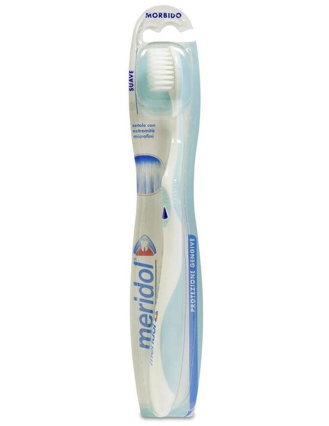 MERIDOLEl cepillo de dientes meridol® Suave está diseñado para personas con enfermedades gingivales o riesgo de padecerlas. Tiene filamentos cónicos con extremos microfinos para proteger las encías mientras limpia a fondo todos los dientes, especialmente alrededor de la línea de las encías. Mango ergonómico para facilitar el uso. El margen de cepillado plano es ideal para la técnica de cepillado de Bass recomendada para personas con problemas de encías. Diseñado en asociación con dentistas.