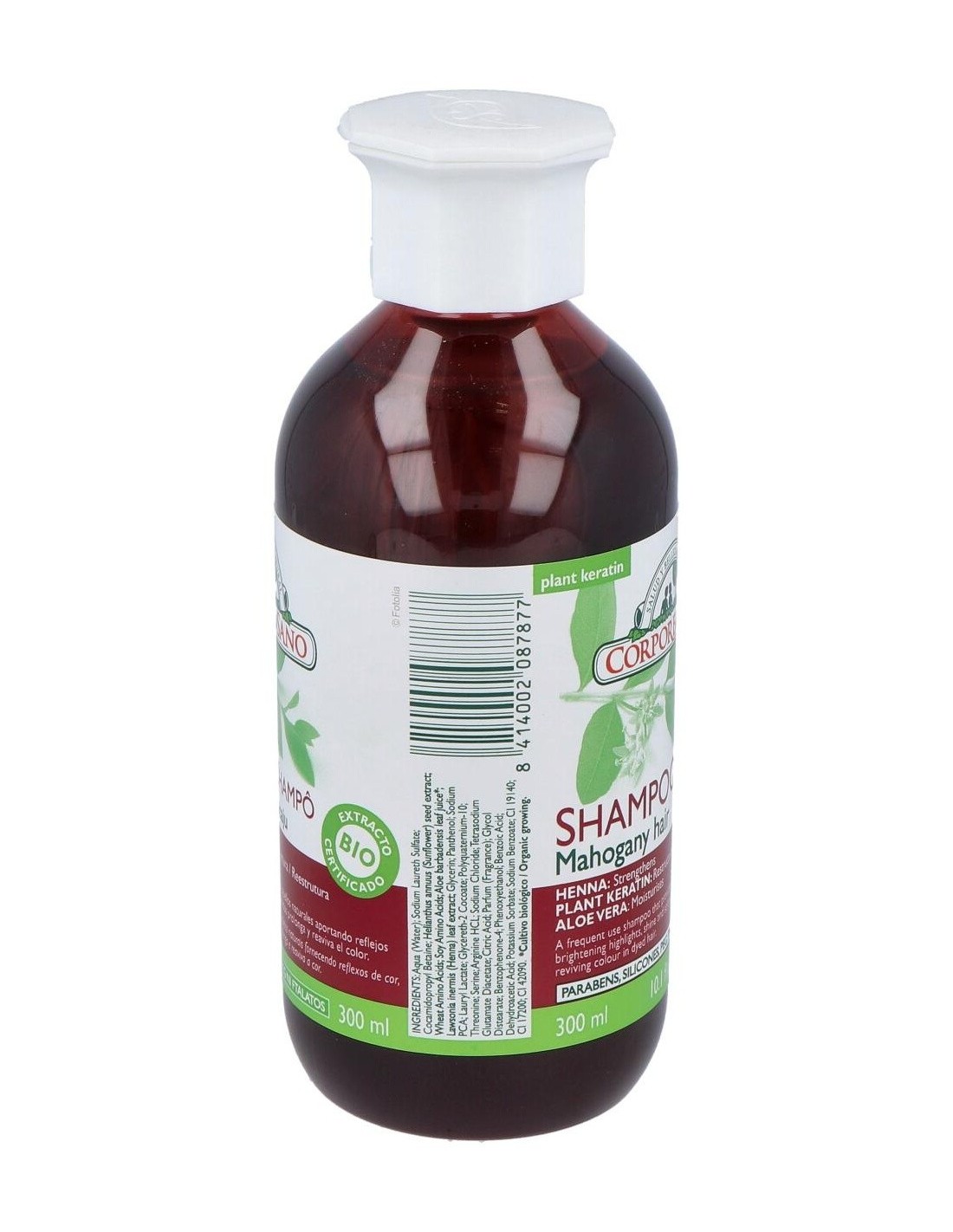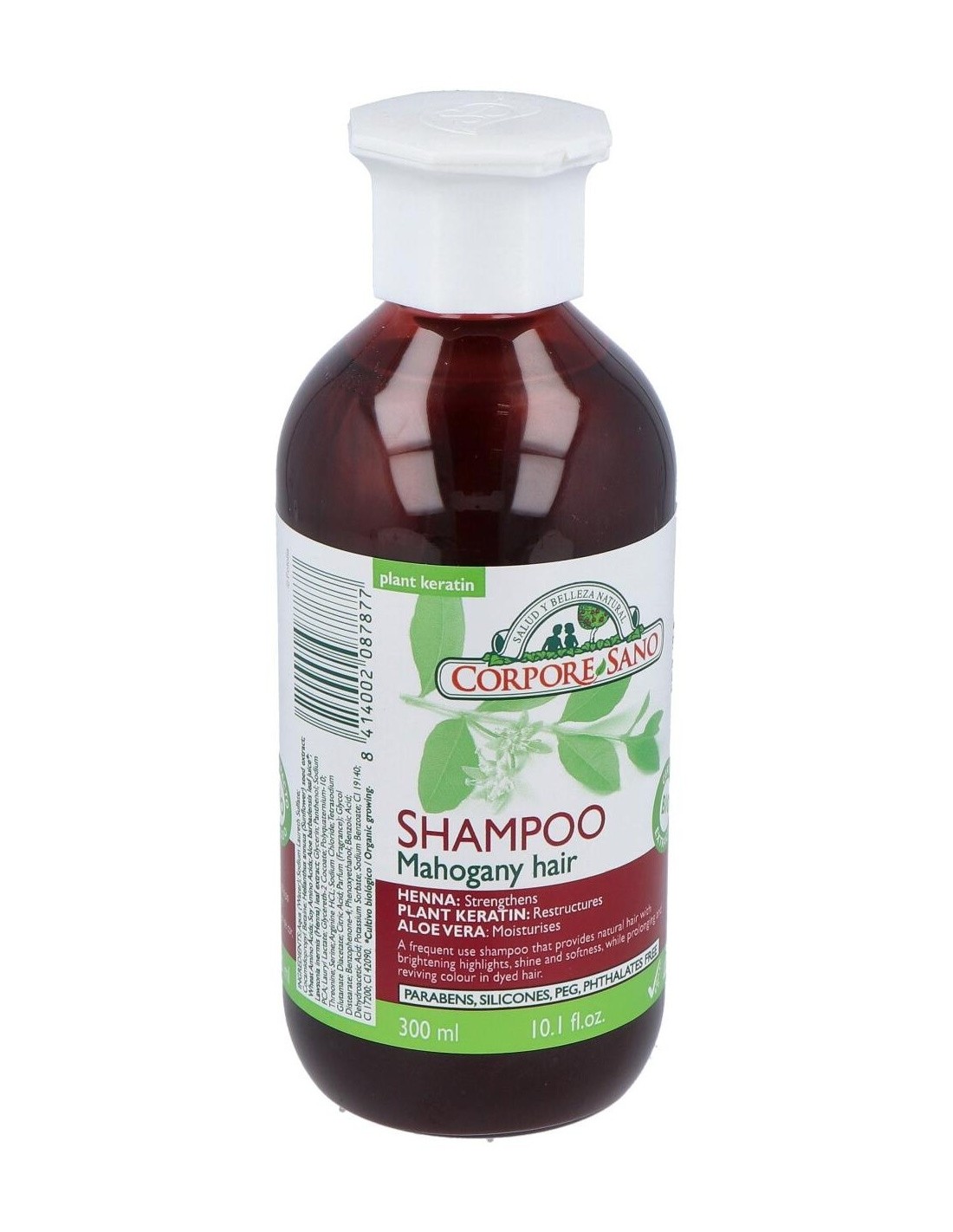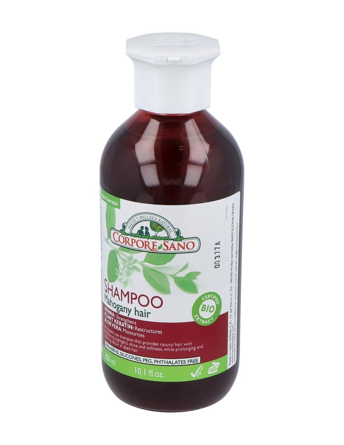 El Champú de Corpore Sano para Cabellos Caoba contiene Henna, Keratina vegetal y Aloe Vera que nutren y aportan cuerpo al cabello desde el interior. E