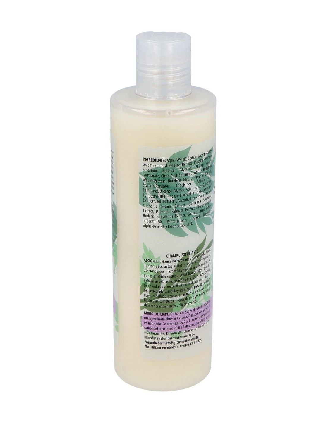 Para tratamiento de choque anticaspa, especialmente de tipo seborreico. El champú exfoliante actúa a dos niveles: Acción anticaspa: desprende por microexfoliación las células muertas. Los ácidos alfahidroxiácidos (AHA) liposomados ayudan a exfoliar las células muertas de la piel, aportando excelentes propiedades nutritivas e hidratantes. Acción seborreguladora: regula y equilibra la grasa del cabello y el cuero cabelludo gracias a extractos naturales de miel, limón y un complejo enriquecido de algas marinas y agua de mar rica en minerales y oligoelementos.