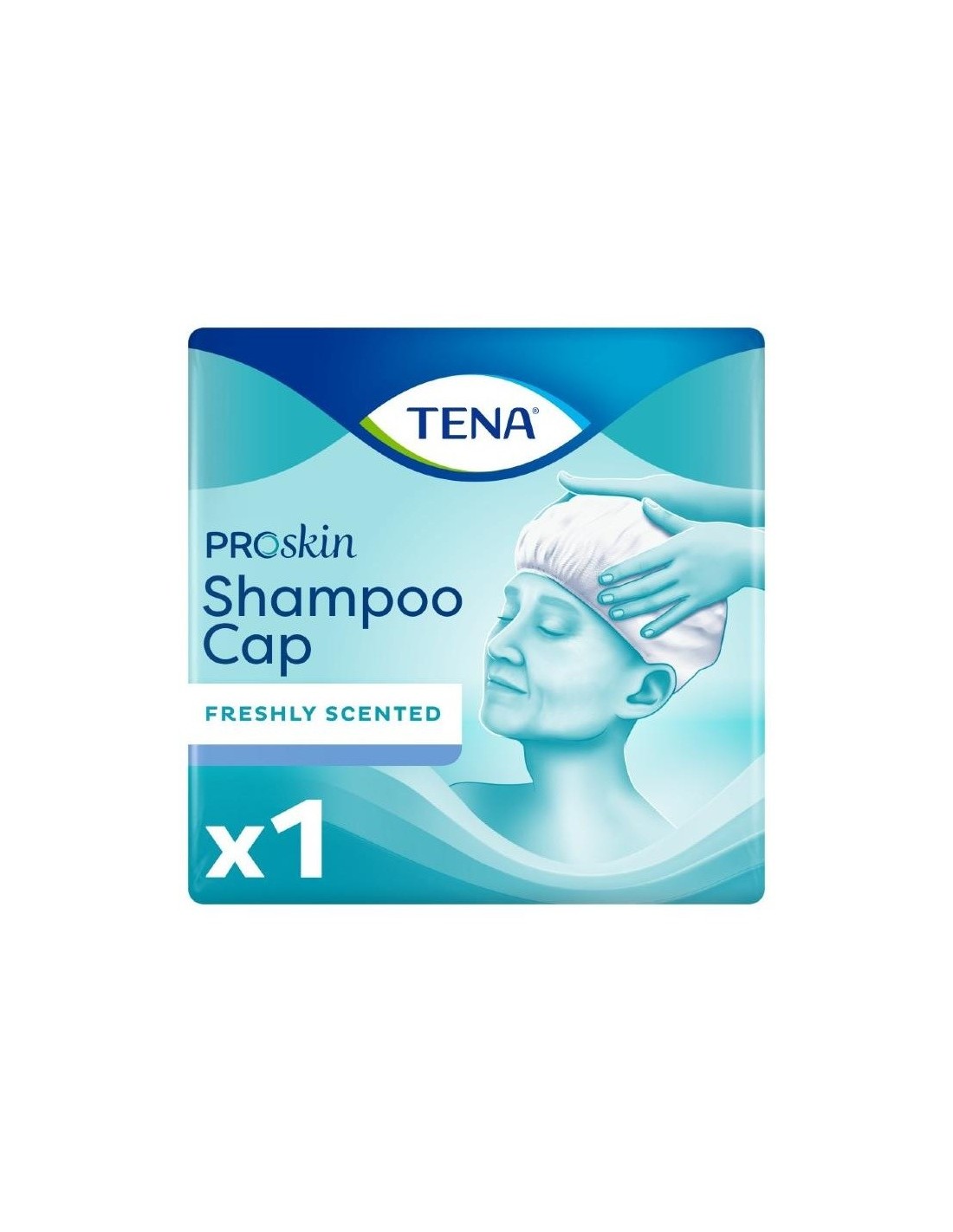TENATENA ProSkin Gorro Champú es un gorro humedecido con champú y acondicionador de agradable olor que permite lavar el cabello cómodamente cuando existen dificultades que impiden el baño o la ducha normal. El gorro es muy fácil de usar, solo hay que aplicarlo sobre el cabello seco y masajear el champú y el acondicionador en el pelo durante tres minutos. Deja el cabello limpio y suave sin necesidad de aclarado. Para mayor confort, el gorro puede calentarse en el microondas dentro del paquete cerrado.