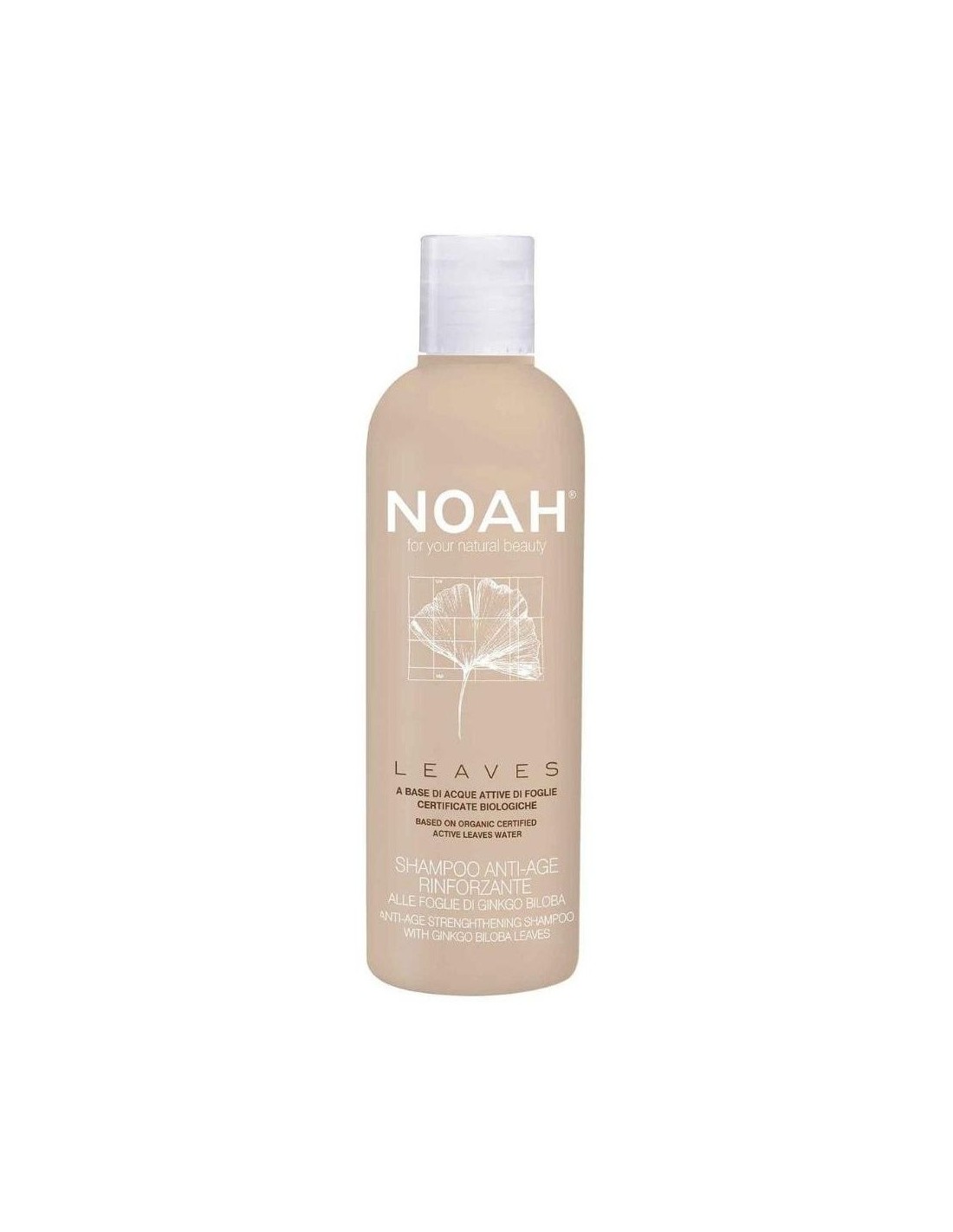 NOAHChampú fortalecedor con efecto antiedad para uso frecuente y cabello débil. Su base limpiadora está compuesta por detergentes 'suaves' de base vegetal que respetan el cabello y el cuero cabelludo. Las aguas activas de las hojas de Ginkgo Biloba orgánico certificado dan fuerza y ??vigor al cabello haciéndolo más fuerte. El producto NO contiene Siliconas, Parabenos, Parafina, Aceites Minerales, DEA y SLS.
