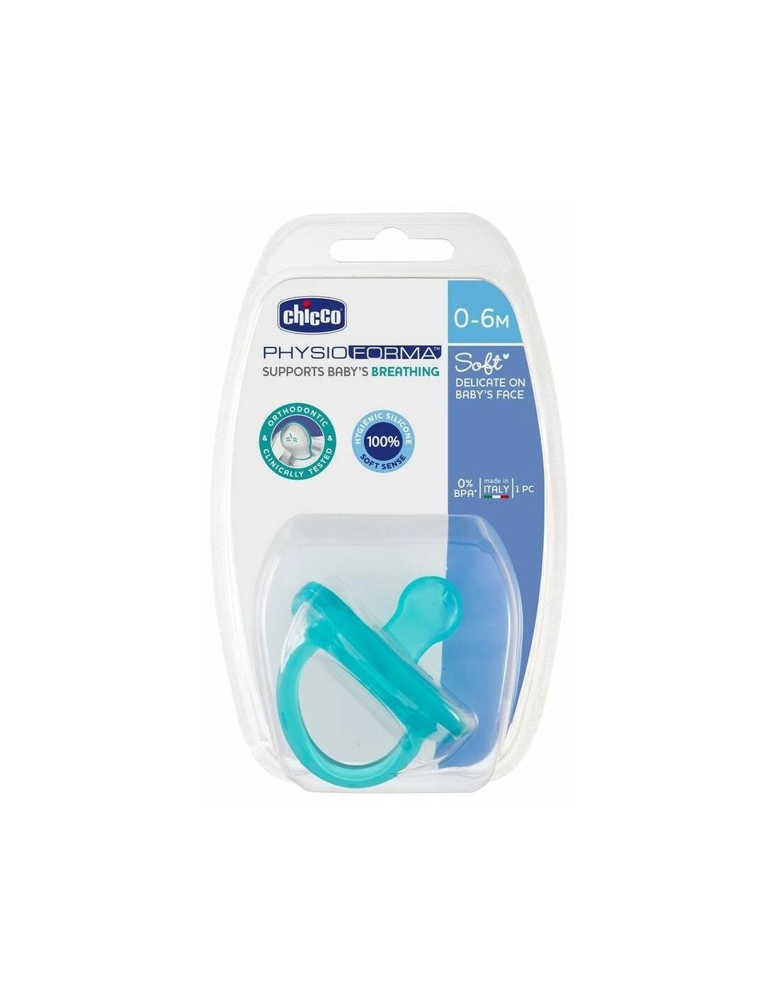 Chupete Physio Soft Todo Silicona 0-6M 1Un Azul Chicco
