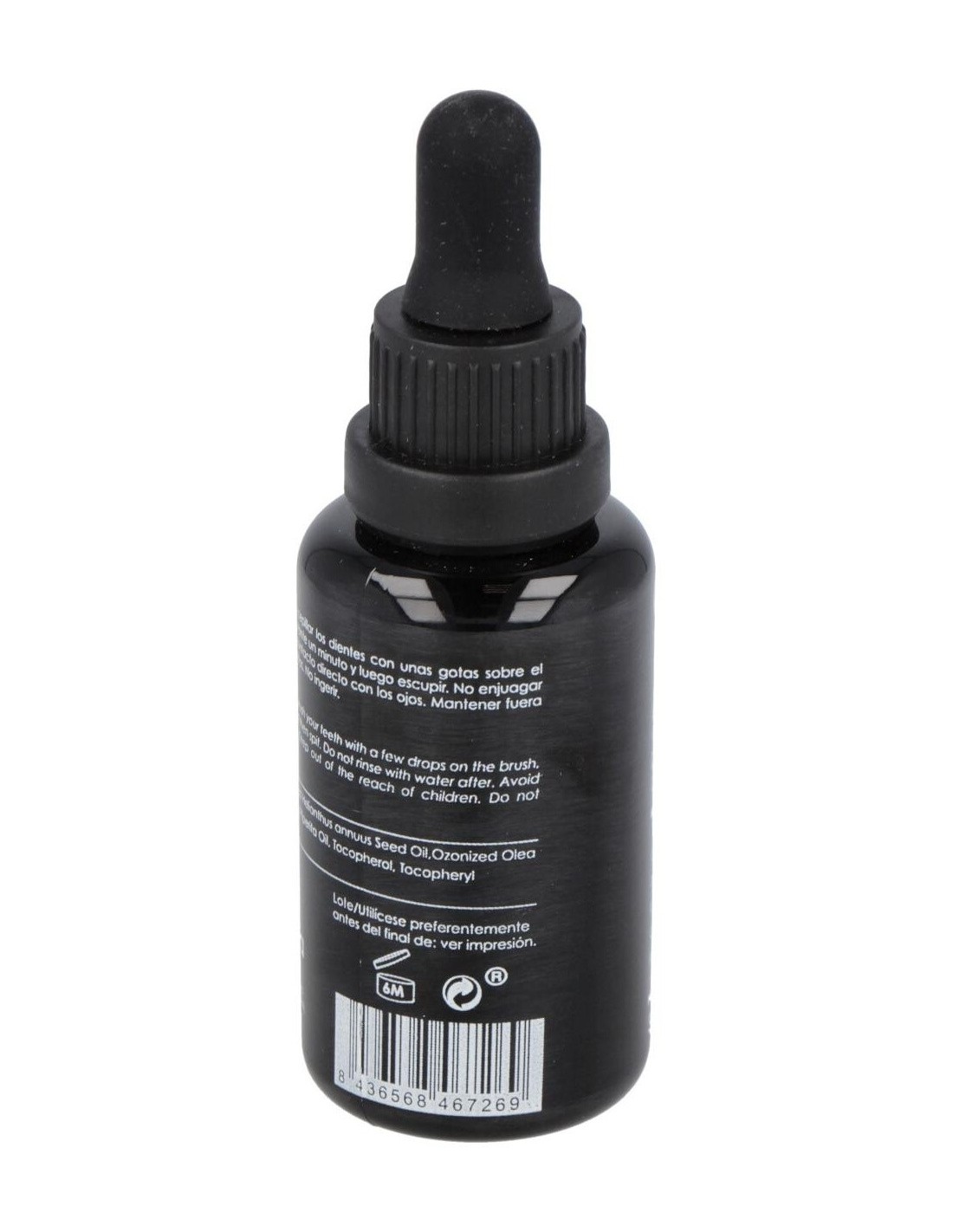 Aceite ozonizado para uso bucal, que actúa como un eficaz antiséptico, ayudando a evitar la proliferación de bacterias patógenas. Su textura untuosa se fija y nutre las encías, e impide la fijación de placa.