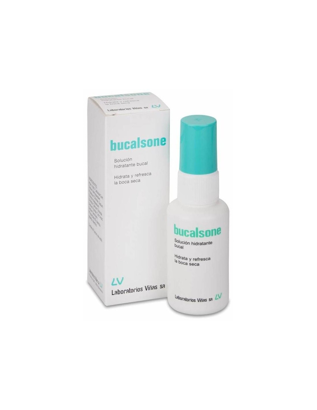 Solución salina en spray de uso bucal. Su composición en electrolitos similar a la de la saliva, hacen de Bucalsone una excelente saliva artificial. Bucalsone gracias a sus propiedades hidrata y lubrica la cavidad oral, ayudando a la masticación, a la deglución y al habla. Por su contenido en fluoruro sódico y xilitol protege frente a las caries y otros procesos bucales, previniendo y aliviando el mal aliento. Bucalsone se presenta en frasco con válvula pulverizadora de 50 ml, un formato fácilmente transportable.