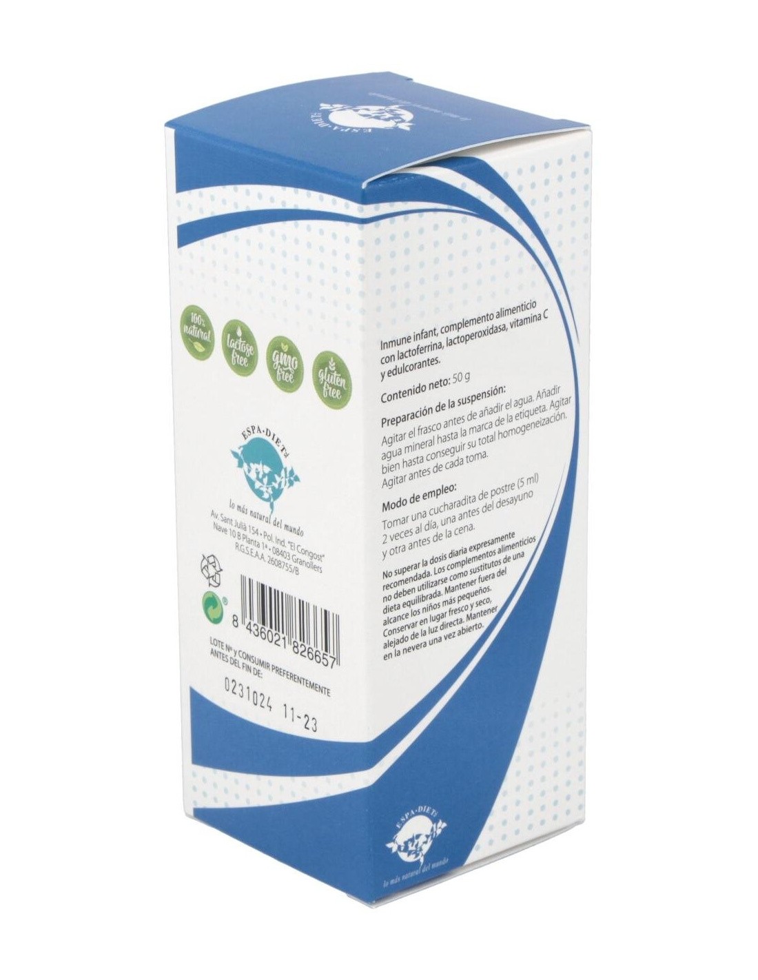 Inmune Infant Suspension Oral 50Gr. Polvo de Espadiet es un complemento alimenticio diseñado para apoyar el bienestar infantil de manera natural. Está indicado para niños que requieren un aporte adicional en su dieta diaria, facilitando su administración gracias a su formato en suspensión oral.