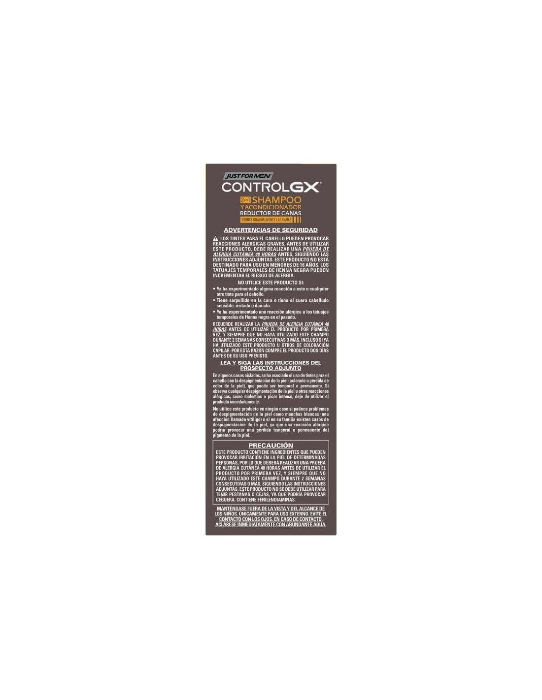 Just For Men Control GX Champú y Acondicionador Reductor de Canas es un producto multifunción: lava el cabello con suavidad a la vez que ayuda a reducir las canas de forma gradual y aporta una apariencia natural. Además de ayudar a recuperar el tono del color del cabello, Just For Men Control GX Champú y Acondicionador Reductor de Canas ayuda a potenciar el volumen y el grosor del cabello. Asimismo, al ser también acondicionador, deja el pelo suave y sedoso.