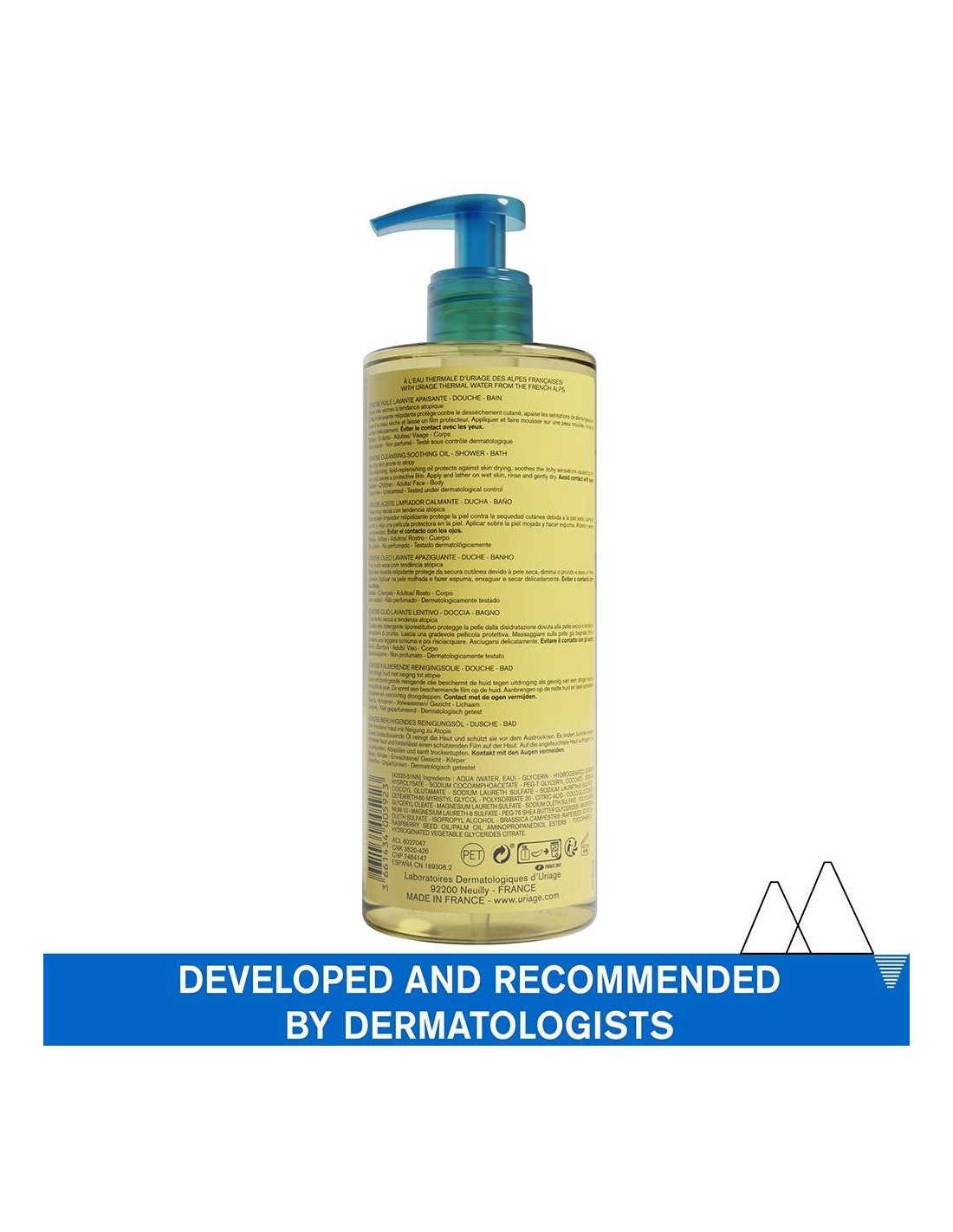 URIAGEEste aceite limpiador protege contra la sequedad cutánea y calma las sensaciones de picor. Su espuma fina y extrasuave aporta un confort inmediato y duradero en pieles secas a muy secas. Gracias a su alta concentración de glicerina, deja una película protectora no grasa que protege la piel contra las agresiones externas.