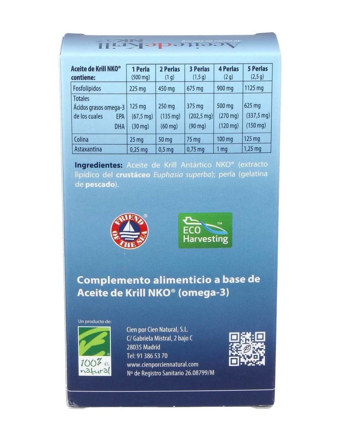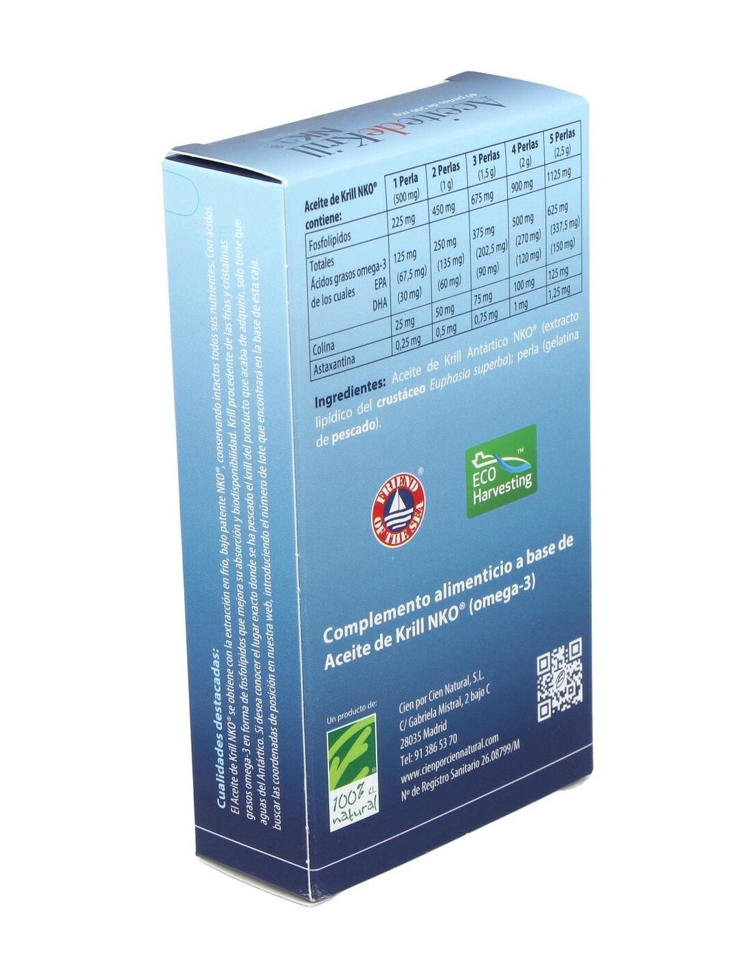 - Contiene aceite de krill NKO, que aporta ácidos grasos omega-3 en forma fosfolipídica, facilitando su absorción.