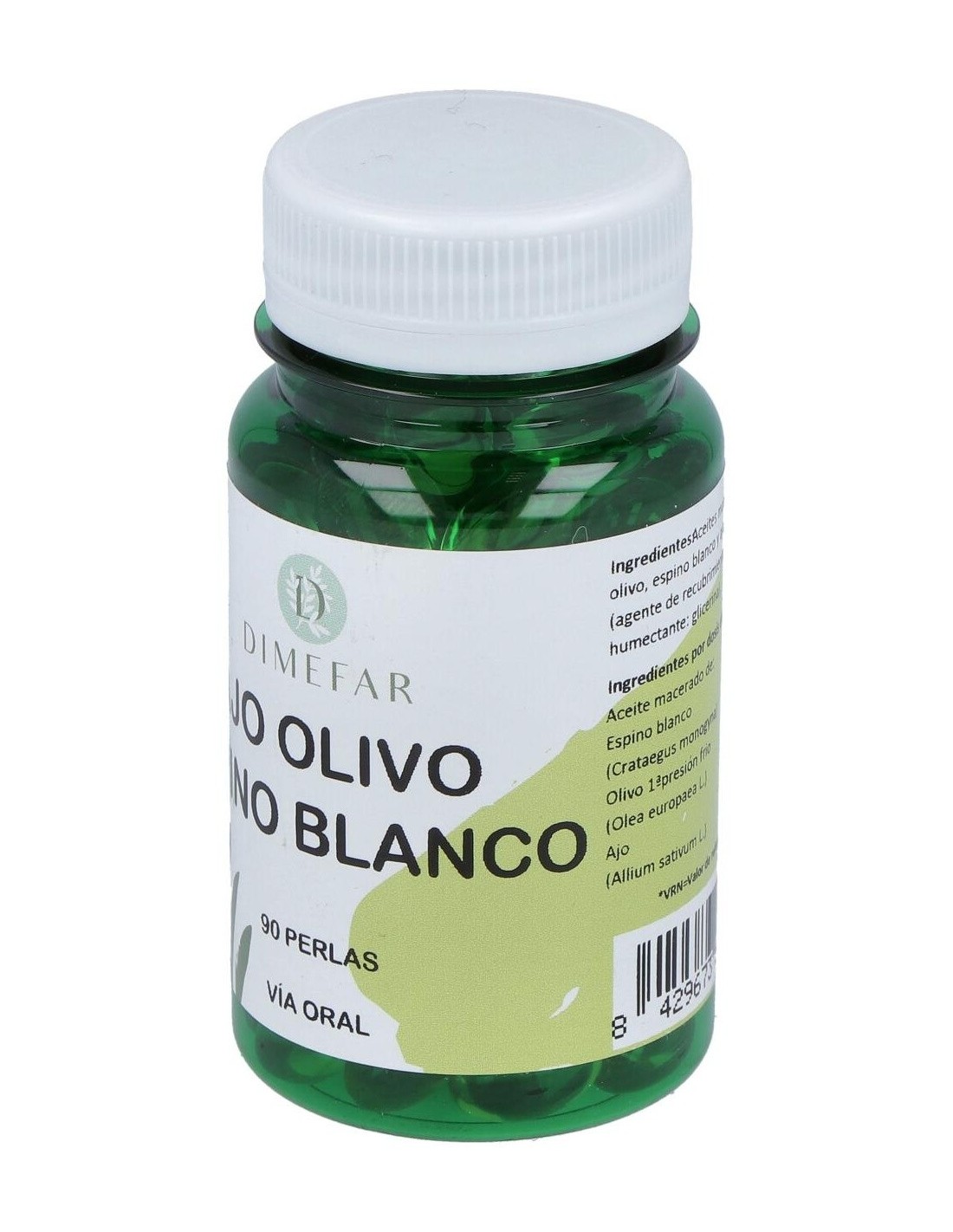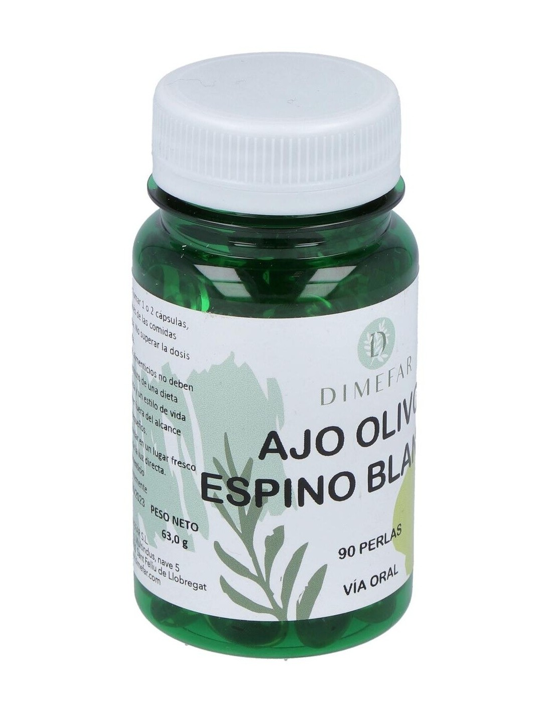 Ajo+Olivo+Espino 90Perlas de Dimefar es un suplemento diseñado para personas interesadas en complementar su dieta con ingredientes naturales. Está formulado para quienes buscan una opción que integre extractos de plantas reconocidas por su uso tradicional.
