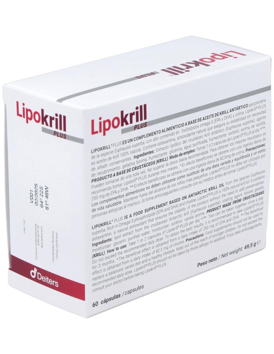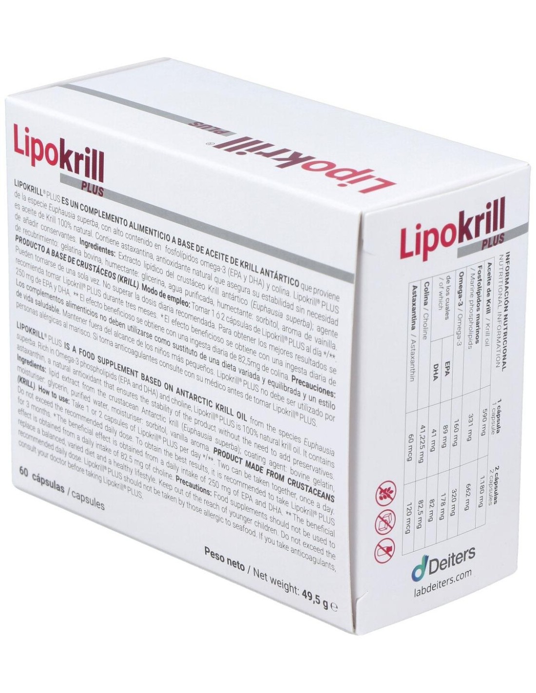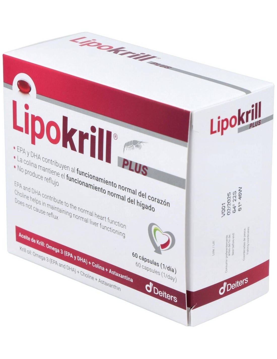 100% aceite de Krill con un alto contenido en fosfolípidos de omega-3 (EPA y DHA) que contribuyen al funcionamiento normal del corazón, a mantener niveles normales de triglicéridos en sangre y a mantener la presión arterial normal. Además gracias a la colina presente en el aceite de Krill, contribuye al metabolismo normal de los lípidos y al funcionamiento normal del hígado. Sin olor ni sabor.