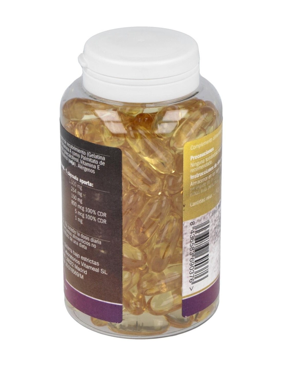 Cápsulas de aceite de pescado obtenido de atún, salmón, fletán, caballa y bacalao procedentes del Atlántico Sur, rico en omega 3, grasa necesaria para el fortalecimiento de las neuronas y demás funciones del organismo. Además favorecen la salud cardiovascular, reduciendo el riesgo de sufrir afecciones relacionadas con el corazón.