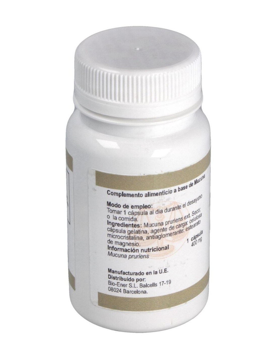 Complemento alimenticio en forma de cápsulas, elaborado a base de extractos de semillas de mucuna pruriens. Contiene, de manera natural, L-dopa, un aminoácido que promueve la producción de dopamina, aportando diversos beneficios para el organismo. Ayuda en la mejora del sueño y a regular el humor, favorece una buena función cognitiva y, en algunos casos, ejerce un efecto vigorizante en los hombres.