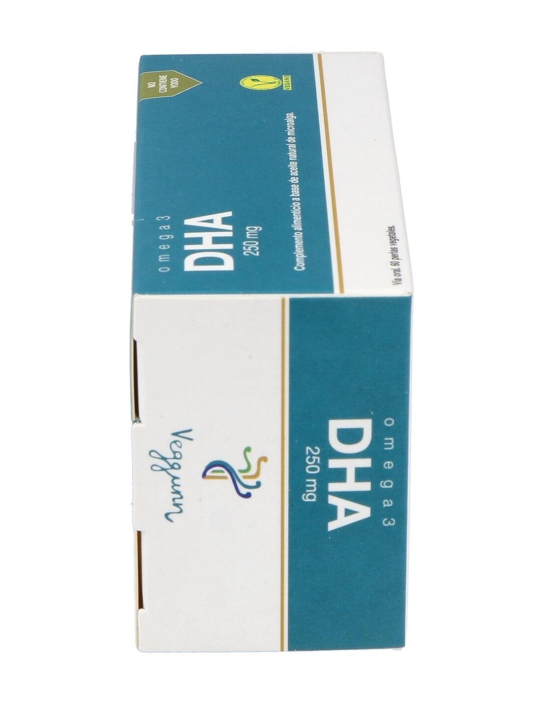 Aceite de microalga Schyzochitrium sp 625 mg (250mg de ácido docosahexaenoico (DHA)) contenido en cápsulas de softgel (perlas), gelatina vegetal, almidón de maíz modificado, glicerol, gelificante (carragenano), anitoxidante (mezcla de tocoferoles), aceite vegetal (triglicéridos de cadena media), emulgente (lecitina de girasol), antioxidante (palmitato de ascorbilo), corrector de acidez (carbonato de sodio), antioxidante (extracto de romero)
