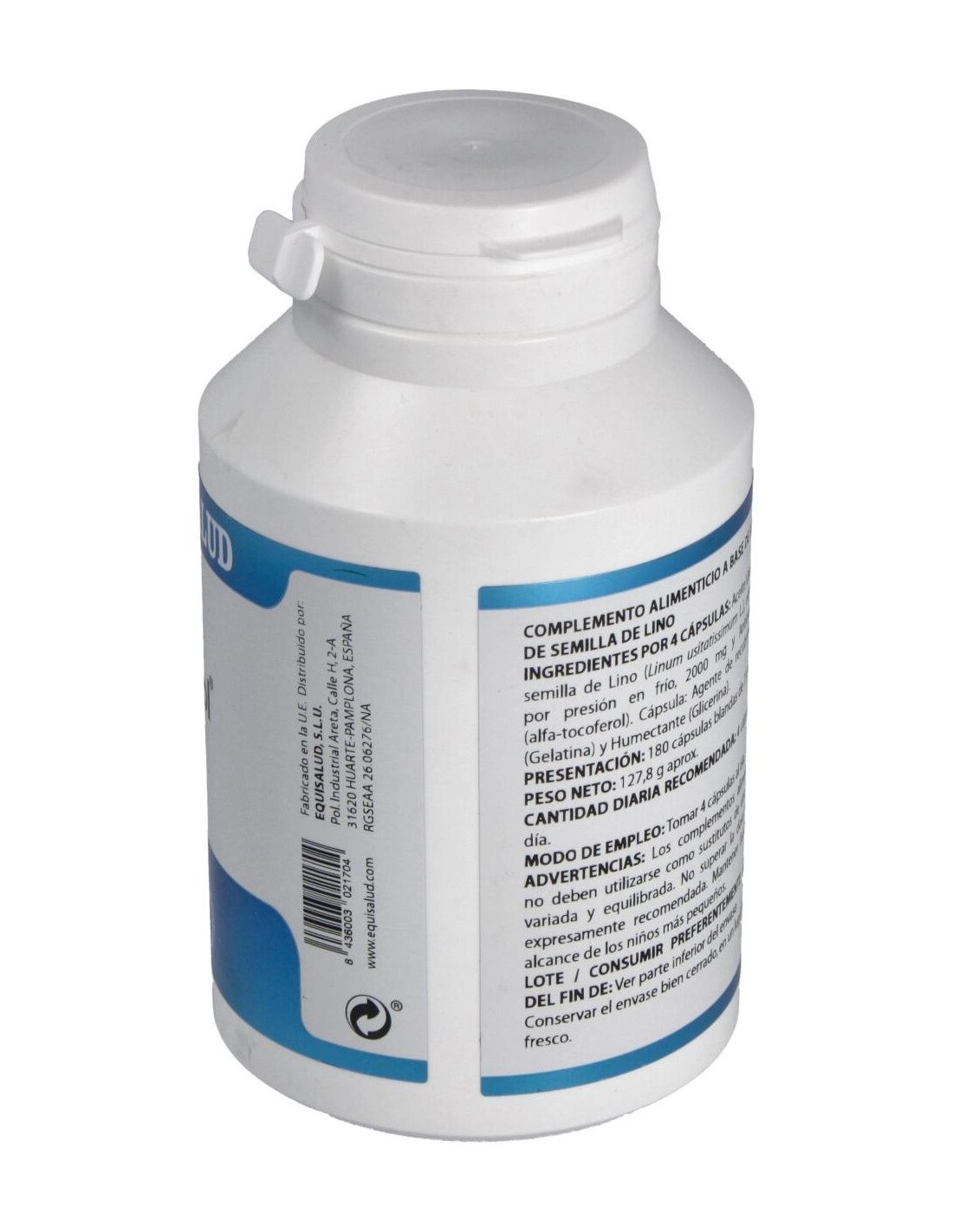 Aceite de Lino y Vitamina E. Envoltura vegetal, Gelatina, Glicerina.