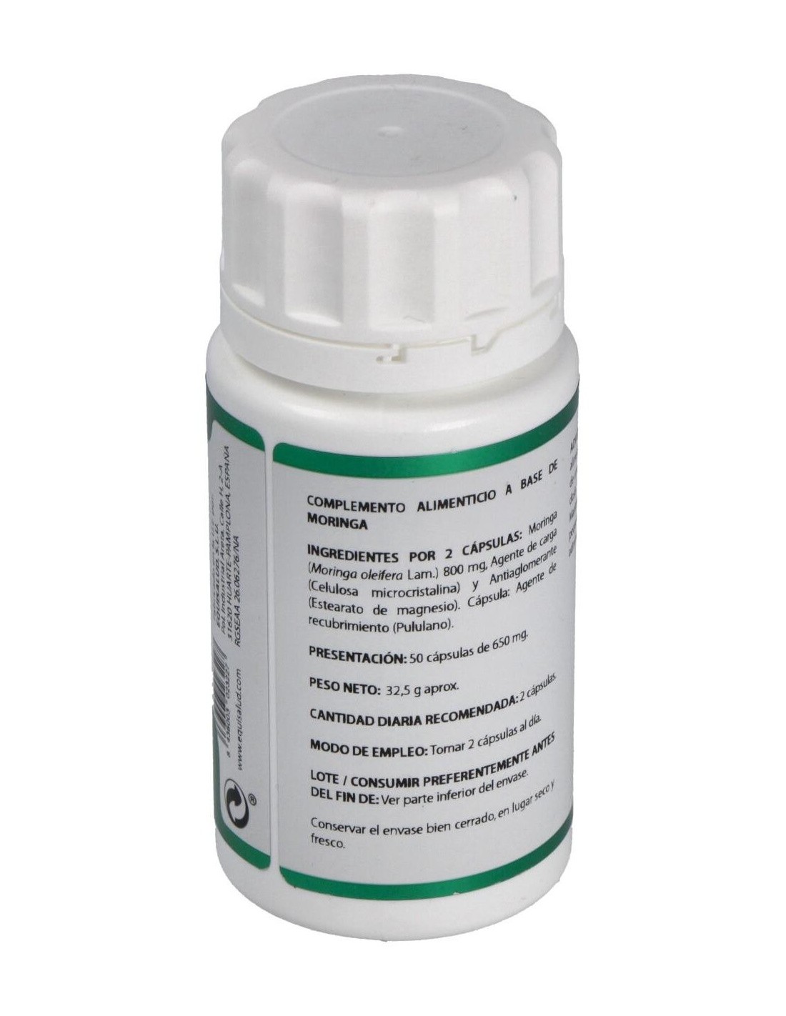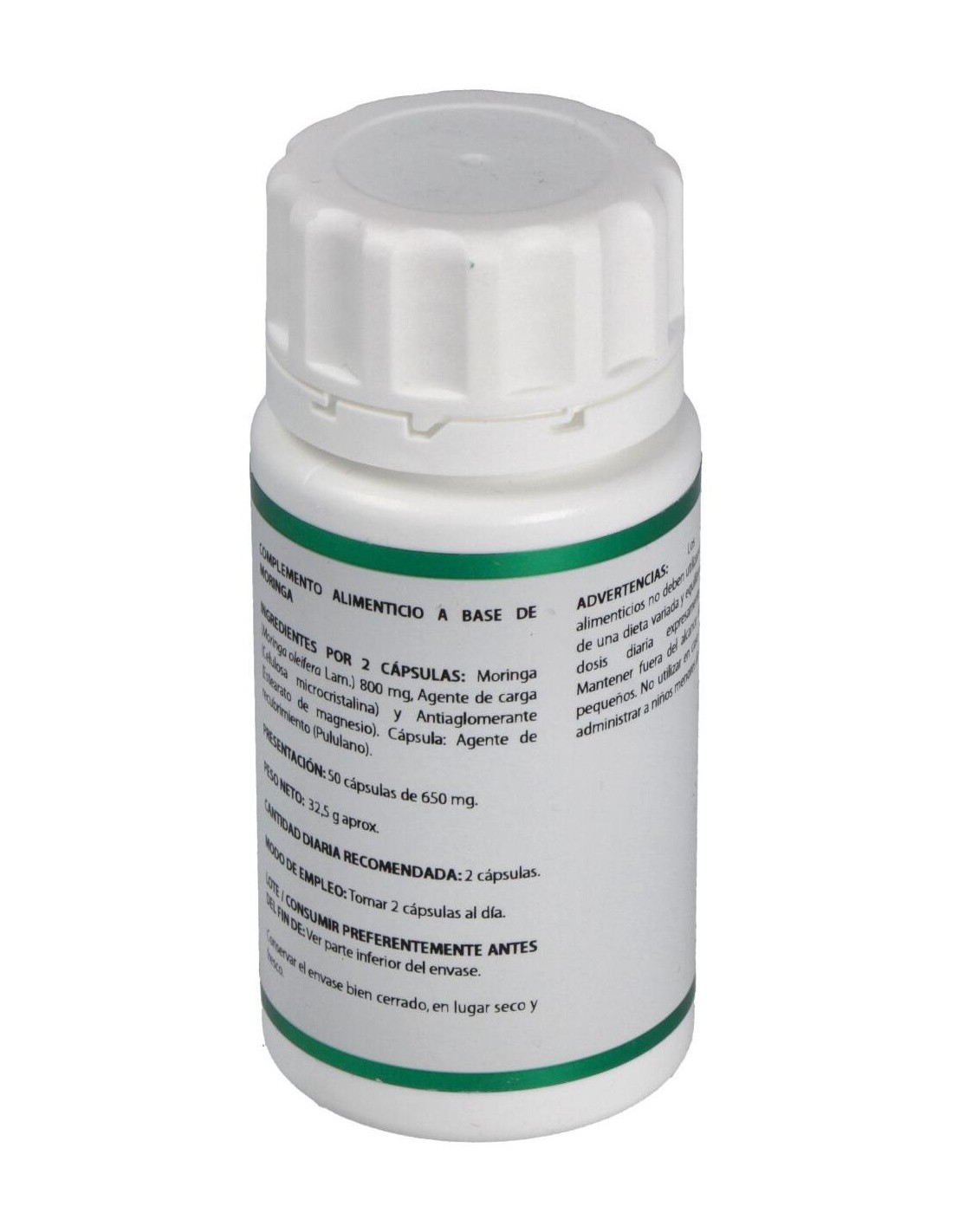 La moringa es una planta muy rica en antioxidantes, vitaminas, minerales, aminoácidos y otros nutrientes. Gran fortalecedor del organismo, con un gran abanico de acciones que logran un bienestar general. En la diabetes, como estimulante sexual en los hombres, regulador del colesterol, para perder peso, como potenciador de la respuesta inmunológica saludable, en los trastornos de la piel, estimulante de la energía, afecciones renales. Ingredientes activos por 2 cápsulas:800 mg de moringa. Modo de empleo:Tomar 2 cápsulas al día. Presentación:Bote de 50 cápsulas.