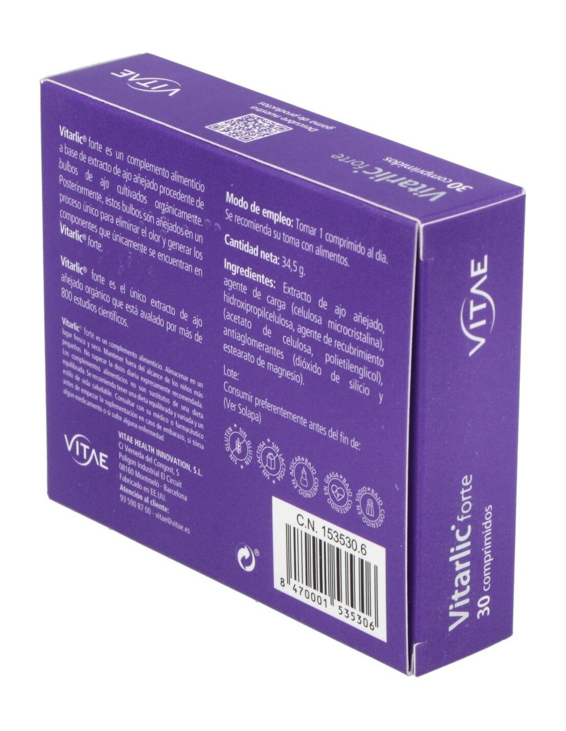 Vitarlic Forte 30 comprimidos de Vitae