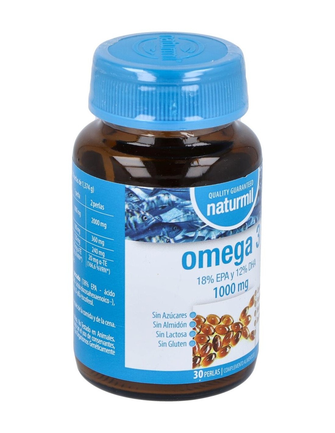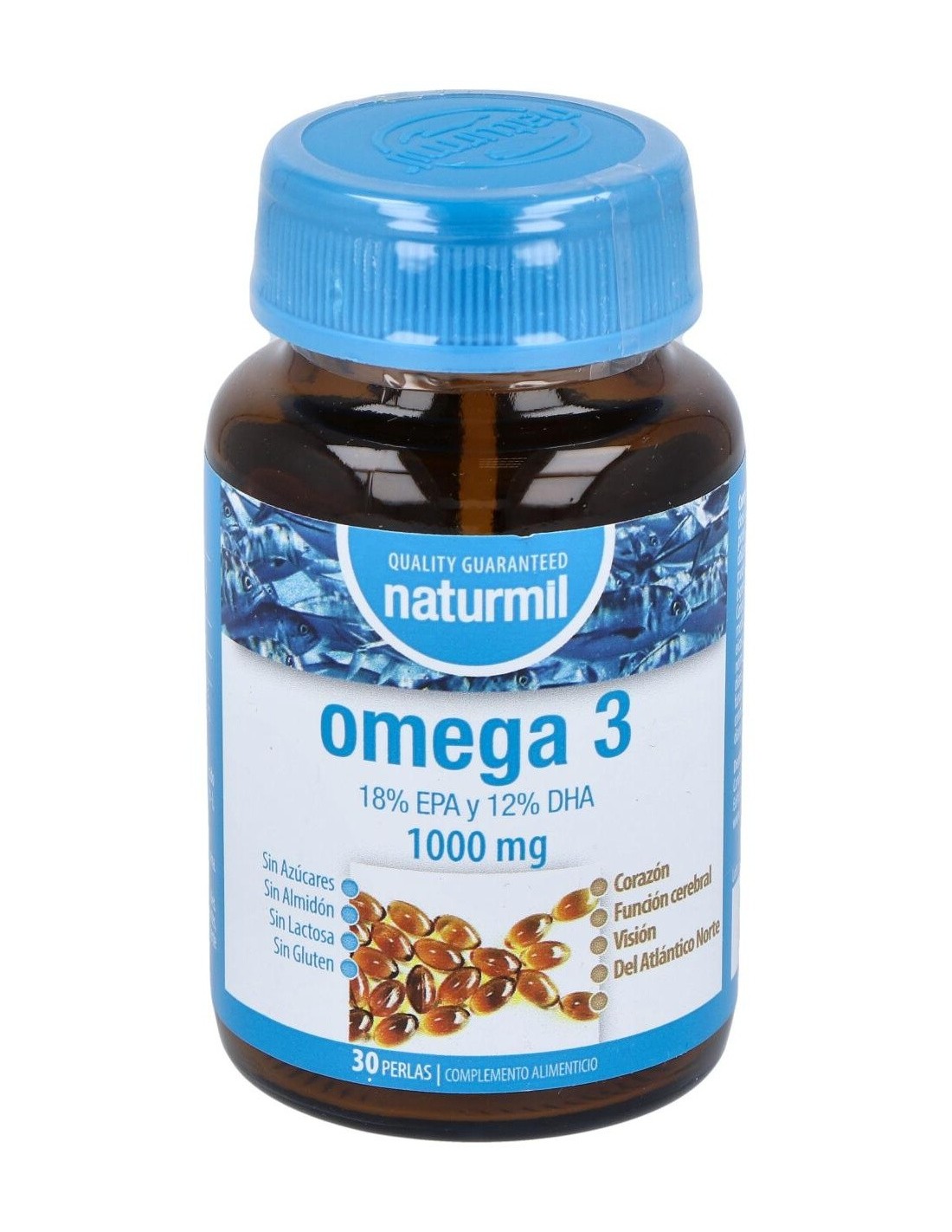 - Cada perla contiene 1000 mg de omega 3 con una concentración de EPA 18% y DHA 12%, componentes que contribuyen al funcionamiento normal del corazón y la función cerebral.