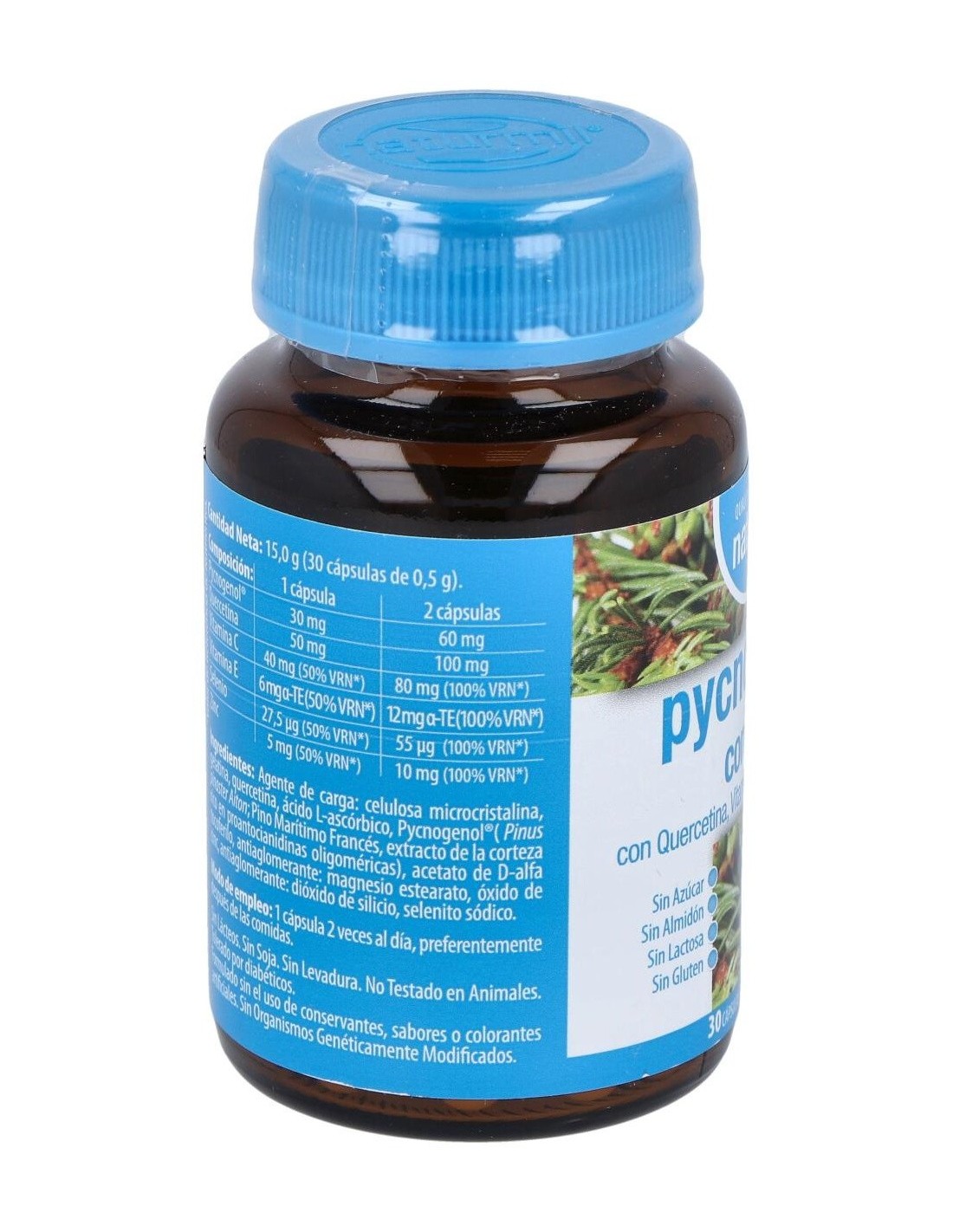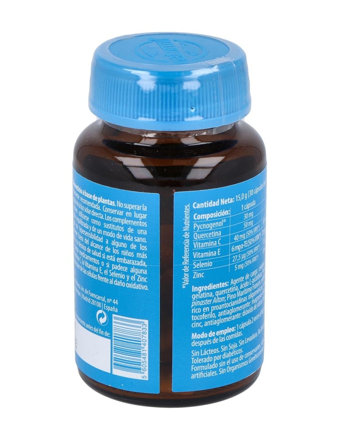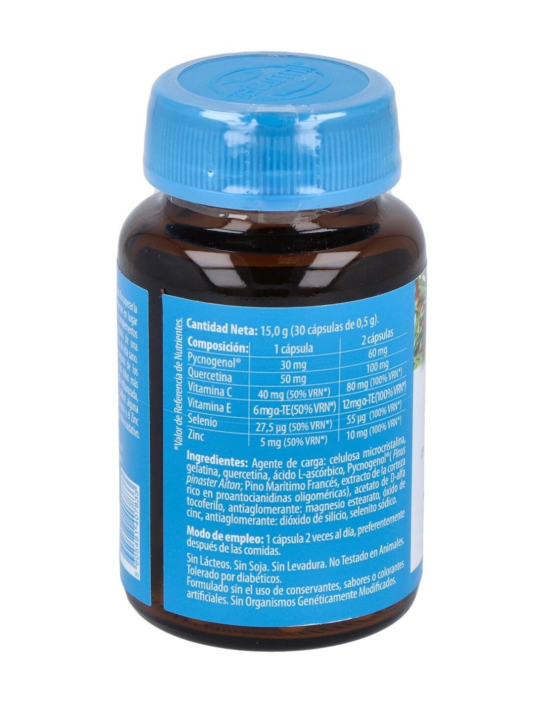 - Contiene 30 mg de Pycnogenol por cápsula, un extracto estandarizado que contribuye a la protección celular frente al estrés oxidativo.
