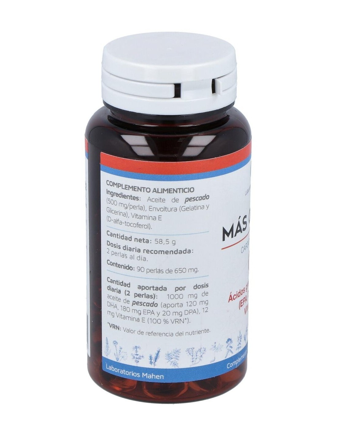 Mas Omega 90Perlas de Mahen es un suplemento diseñado para personas que buscan complementar su dieta con ácidos grasos esenciales. Este producto es adecuado para quienes desean mantener un aporte constante de omega en su rutina diaria, apoyando un estilo de vida equilibrado.