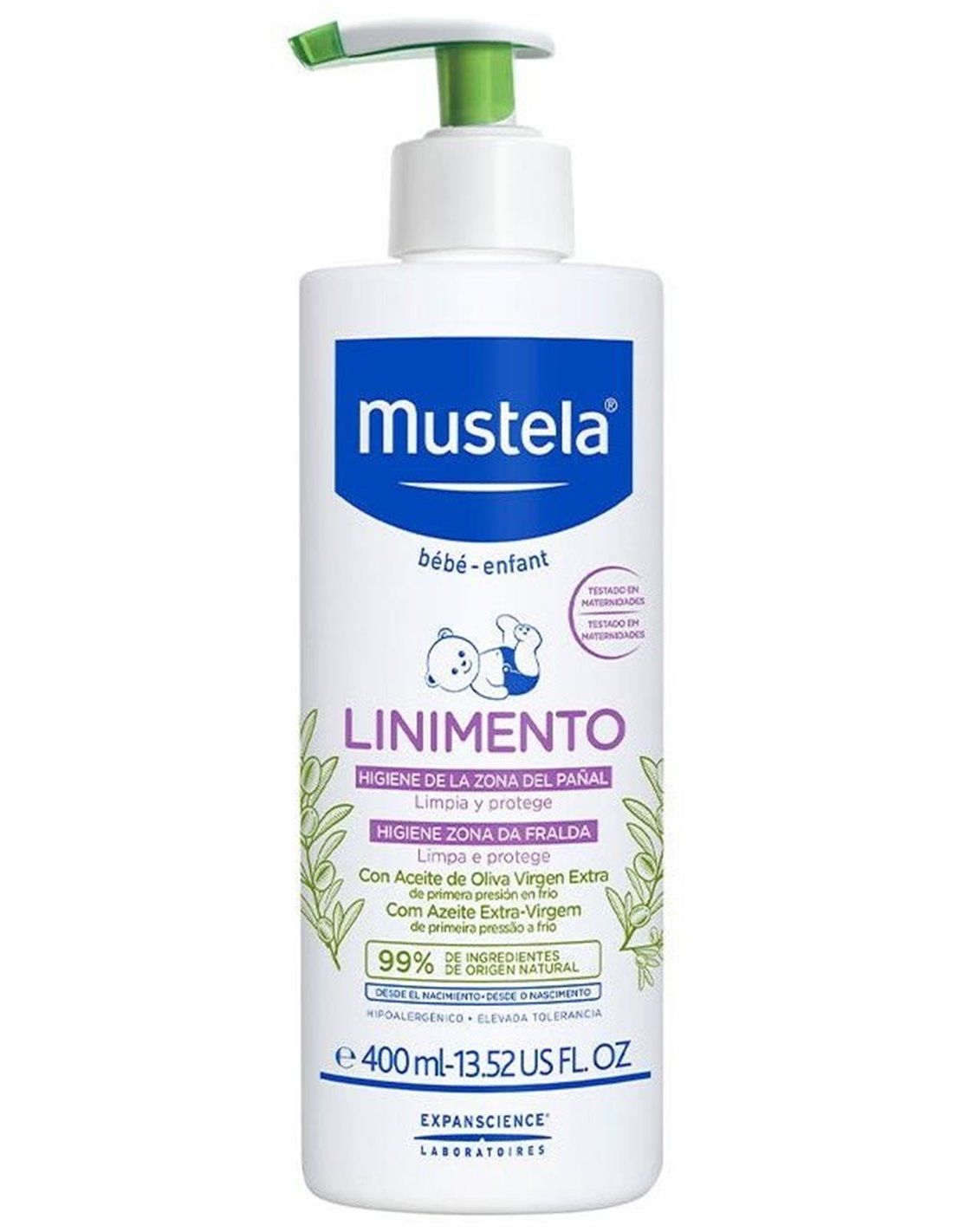 El linimento sin perfume se usa a diario para limpiar eficazmente y con suavidad la zona del pañal del bebé. Es una magnífica alternativa a las toallitas húmedas.Inspirado en una receta tradicional, con aceite de oliva virgen extra, alto en omega 6 y 9, el linimento es un preparado natural, además, deja un film protector para aislar la piel de las agresiones provocadas por la humedad y el roce de los pañales. Su fórmula cuenta con un 99% de ingredientes de origen natural.El linimento de Mustela limpia suavemente el culito del bebé desde su nacimiento. También protege su piel de los daños causados por la humedad y el roce de los pañales.Ingredientes (INCI):Aqua, Olea Europaea Fruit Oil, Calcium Hydroxide, Caprylyl Glycol, Acrylates / C 10-30 Alkyl Acrylate Crosspolymer, Sodium Hydroxide, Sorbitan Oleate, Daucus Carota Sativa Root Extract, Zea Mays Oil, Tocopherol9% de ingredientes de origen natural.Modo de empleo: 1.- Agita el envase antes de usar. 2.- Aplica una buena cantidad de linimento en un disco de algodón. 3.- Limpia con suavidad la zona del pañal, sin necesidad de aclarar. 4.- Listo, ¡ya puedes ponerl el pañal limpio! Presentación:Envase de 400 ml.Recomendaciones y advertencias:No contiene perfume.