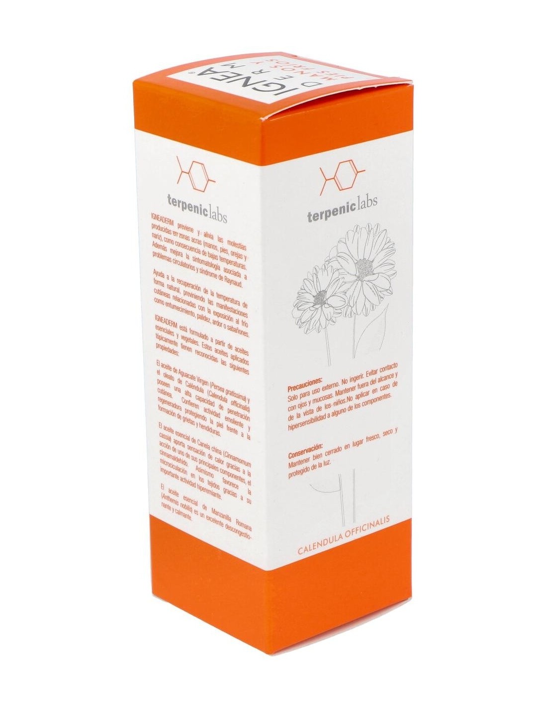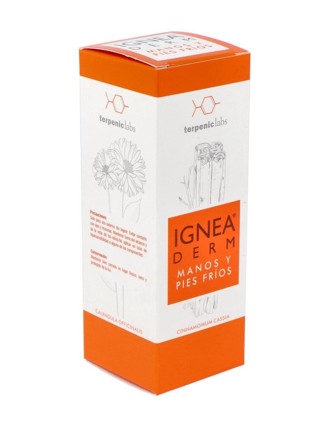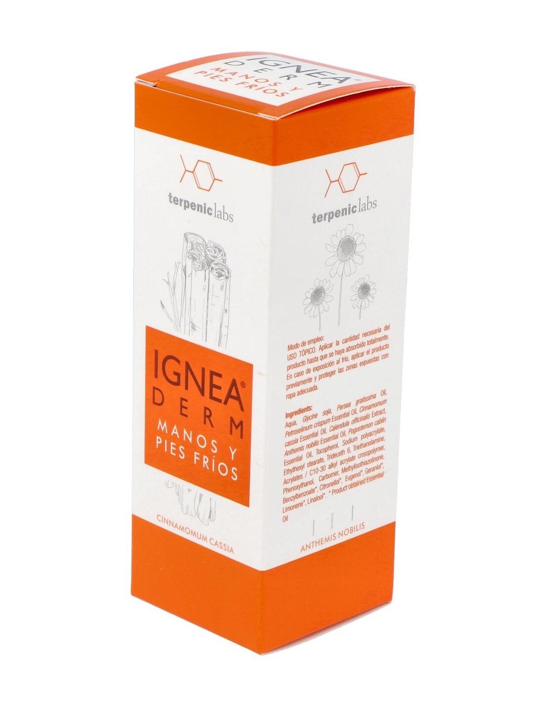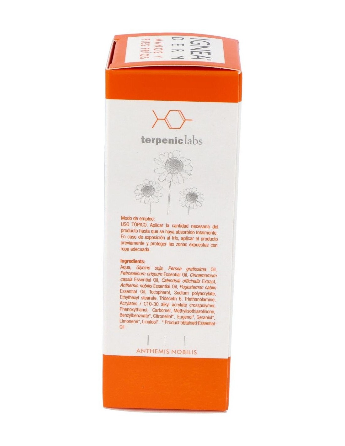 Terpenic Ignea Derm crema de manos y pies fríos 50ml es una crema hidratante que reduce las molestias producidas por las bajas temperaturas, tanto en manos y pies como en otras zonas del cuerpo, como nariz y orejas. Elaborada con ingredientes 100% naturales: aceite vegetal de aguacate virgen, oleato de caléndula, aceite esencial de corteza de canela y aceite esencial de manzanilla romana.